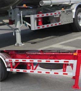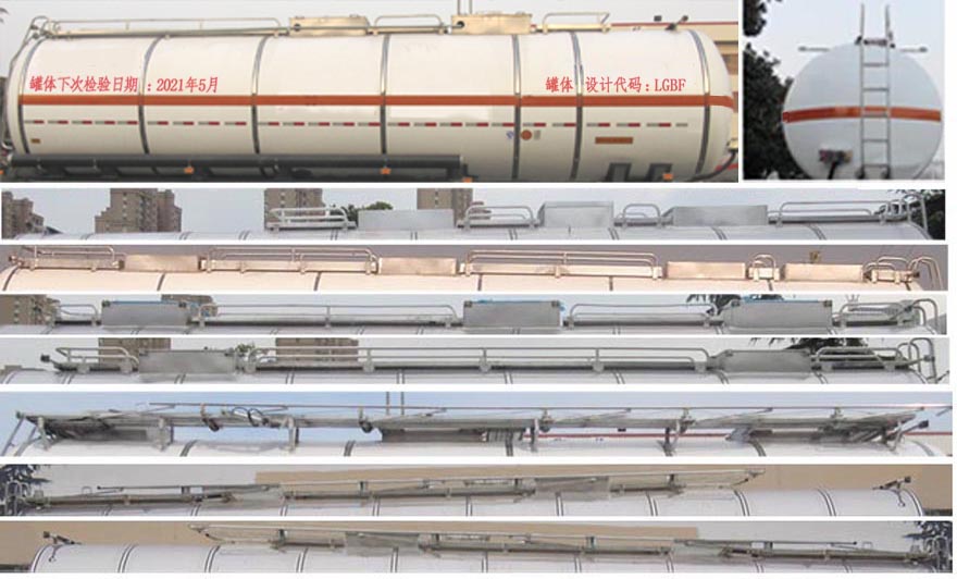 | 备注 | 有效容积40立方米,罐体外形尺寸( mm):外罐长11350长轴2530短轴前2160后2260;内罐长11150长轴2330短轴前1960后2060.危险货物运输车辆的类型为:FL型.危险品类项号为:3.选装侧面防护工具箱位置,选装挡泥板.该车装空气悬架.选装爬梯可装在罐体前部或前后都装,选装不同的外蒙板.选装罐体顶部护栏.选装侧面尾部操作箱.ABS厂家,型号:威伯科(上海)管理有限公司,4005000880或广州瑞立科密汽车电子股份有限公司,CM2XL-4S/2K(4S/2M)或浙江万安科技股份有限公司,VIE-TABSⅡ或广州市西合汽车电子装备有限公司,XH-GQ4S2M-E01或翰德汽车产品(苏州)有限公司,364570001.EBS厂家,型号:克诺尔商用车系统企业管理(上海)有限公司,K11061XVXX或瀚德汽车产品(苏州)有限公司,4S2M或威伯科(上海)管理有限公司, 4801020640或浙江万安科技股份有限公司,VIE TEBS-I.侧防护材料为铝合金,螺栓连接;后防护材料为Q235或铝合金,螺栓连接,后防护断面尺寸80×150mm,离地高500mm.采用适用于牵引危险品运输半挂车的牵引车. | ||