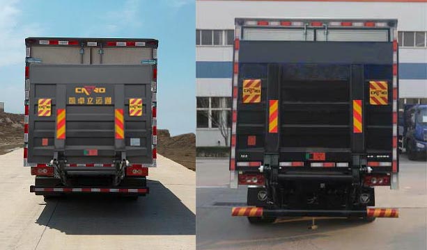 | 备注 | 1.选装导流罩;选装两侧单、双、无侧开门;选装同等功率制冷机组,外观形状可不同.2.ABS型号及厂家对应关系:ABS系统型号:ABS-VI.E;生产企业:广州瑞立科密汽车电子股份有限公司.3..F3.8NS6B156发动机最大净功率为112kw.4.选装前围及前部灯具,前下视镜为选装件可不装,选装排半驾驶室,排半驾驶室对应货箱内部长度为3700mm,单排驾驶室对应货箱内部长度为4080mm.5.侧防护的连接方式是与货箱横梁螺栓连接,侧防护材料为冷板B-2.0/20.后防护连接方式是与车架纵梁螺栓连接,后下部防护装置材料为Q345A。后部防护装置截面尺寸100×50mm,后防护距离车辆离地高度470mm;后部防护选装圆形管Q345A,装置截面尺寸为直径120mm,离地高度:485mm.6.发动机F3.8NS6B156对应油耗值为11.6L/100km ;7.货厢顶部封闭,不可开启;8.选装液压尾板,液压尾板质量为350kg,液压尾板收起状态下的水平长度为280mm. | ||