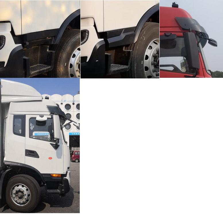 | 备注 | 随底盘选装驾驶室,选装侧窗装饰板,选装前雾灯,选装侧转向灯,选装导流罩,选装遮阳罩,选装不同结构的车门裙板,选装无车门裙板照片;选装与车身颜色相同的前保险杠;选装前下视镜,该车型可选装ETC车载装置.选装厢体结构;侧防护:材质Q235,螺栓连接;后下防护:材质Q235,螺栓连接,断面尺寸120×60mm,离地高度480mm、460mm、440mm;厢体顶部封闭,不可开启,顶板与侧翼板固定连接在一起开启;选装尾板,尾板质量为550kg,尾板收起状态时的水平长度为295mm;选装尾板时仅选用截面尺寸为Φ121的后防护,后防护材质:Q235:连接方式:焊接:离地高度470mm;安装具有卫星定位功能的行驶记录仪;装有ABS,ABS型号:ABS 8,生产厂家:东科克诺尔商用车制动系统(十堰)有限公司; ABS型号:ABS-E 4S/4M,生产厂家:威伯科汽车控制系统(中国)有限公司;选装限速装置,限速89km/h;发动机B6.2NS6B230对应油耗申报值22.9L/100km,发动机B6.2NS6B245对应油耗申报值22.9L/100km. | ||