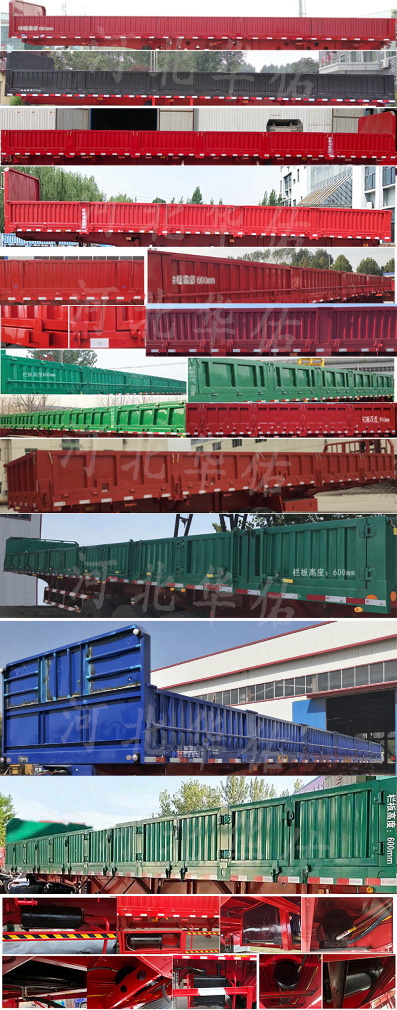 | 备注 | 卸货方式为:侧卸;选装前挡板结构;选装侧面栏板样式,选装吊开门和下开门;选装合页样式,选装后部结构;选装号牌板样式;选装大梁异形孔结构;选装液压油箱位置,液压油箱可选装圆形或方形样式,选装后组合灯圆形及后雾灯圆形结构;ABS生产企业/型号:山东海纳汽车科技有限公司/HNABS4S/2m-4S/4m;侧、后防护装置均采用Q235B,与车辆采用焊接,后防护装置的断面尺寸为140mmx70mm,离地高度为490mm,车长/轴距/后悬/半挂车牵引销到车辆最前端的距离对应关系(mm):13000/6880+1310+1310/2100/1400,13000/6780+1310+1310/2200/1400,13000/6680+1310+1310/2300/1400,12500/6480+1310+1310/2000/1400,12000/6280+1310+1310/1700/1400. | ||