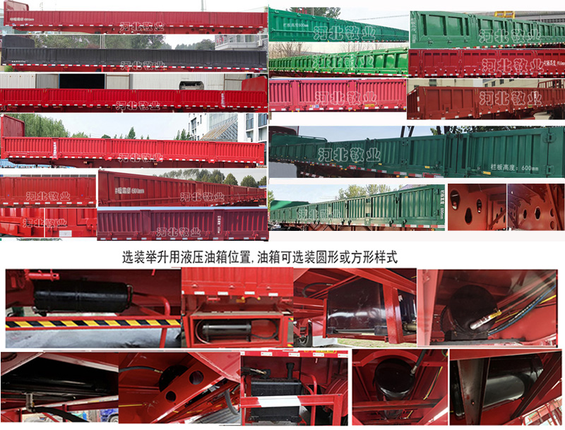 | 备注 | 卸货方式为:侧卸;选装前挡板结构;选装侧面栏板样式,选装吊开门和下开门;选装侧面合页样式;选装后部结构;选装号牌板样式;选装大梁异形孔结构;选装液压油箱位置,油箱可选装圆形或方形样式,选装矩形后组合灯及矩形后雾灯结构;一,ABS生产企业:广州瑞立科密汽车电子股份有限公司,型号:CM2XL-4S/2M;侧、后防护装置均采用Q235B,与车辆采用焊接,后防护装置的断面尺寸为140mmx50mm,离地高度为450mm,车长/轴距/后悬/半挂车牵引销到车辆最前端的距离对应关系(mm):13000/6800+1310+1310/2280/1300,13000/6800+1310+1310/2180/1400,13000/6700+1310+1310/2280/1400,13000/6600+1310+1310/2380/1400,12500/6400+1310+1310/2280/1200,12000/6280+1310+1310/1800/1300 | ||