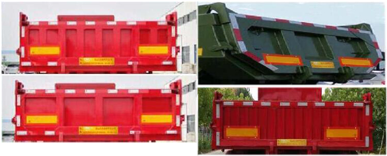 | 备注 | 该车自卸方式为后卸;车身需安装液压油箱,侧面栏板选装平面样式及竖瓦楞样式,方管十字花样式,后部栏板选装平面样式,竖瓦楞样式;货厢栏板上的竖筋数量不限制,选装后翻转支架样式,车辆选装空气悬架,选装液压油箱结构及安装位置;车辆外形长度/轴距/后悬(mm)对应关系为:9500/4580+1310+1310/1420,9100/4320+1310+1310/1300,8700/4170+1310+1310/1100;ABS系统生产厂家为:梁山海纳电子科技发展有限公司,ABS型号规格为:HNABS4S/4M;侧防护装置,后下部防护装置材料均采用Q235B,与车辆连接方式均为焊接,后下防护装置离地高度为480mm,断面为140mm×80mm. | ||