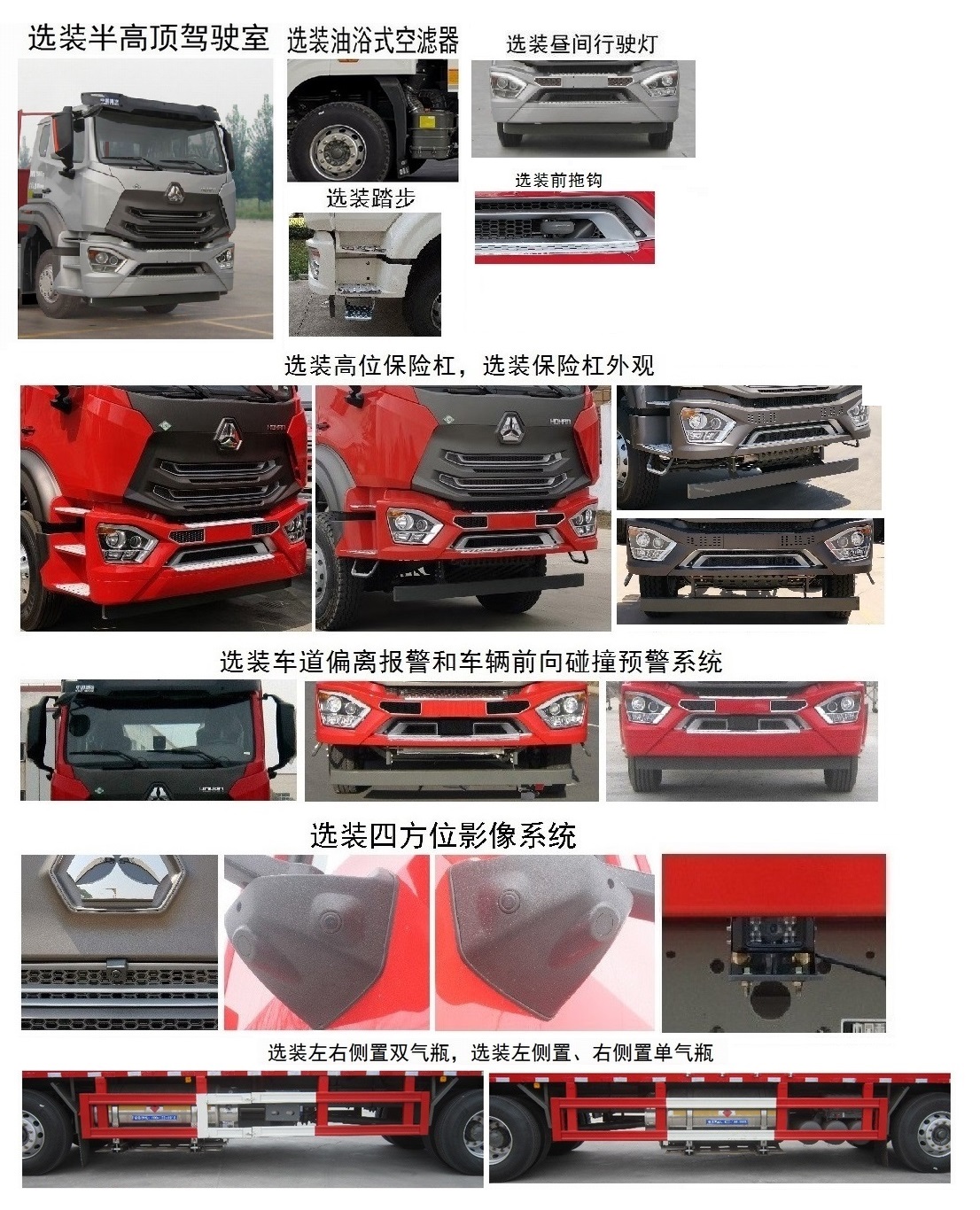 | 备注 | 该车选装半高顶驾驶室时,整车高度为3280mm;选装高顶驾驶室时,整车高度为3620mm。选装高位保险杠。选装保险杠外观。选装踏步。选装昼间行驶灯。选装油浴式空滤器。选装车道偏离报警和车辆前向碰撞预警系统。选装四方位影像系统。选装前拖钩。选装左右侧置双气瓶。选装左侧置、右侧置单气瓶。驾驶室准乘人数与额定载质量参数一一对应。轴距与货箱内长尺寸、车长、后悬对应关系如下:轴距1800+4300,货箱内长7800,对应车长10120或10320,后悬2470或2670;轴距1800+4800,货箱内长8600,对应车长10920或11120,后悬2770或2970;轴距1800+5600,货箱内长9520或9600或9700,对应车长12000,后悬3050。该车可选装货厢外观结构。选装保险杠外观。选装三截板、四截板。选装横瓦楞、竖瓦楞。侧面防护装置所用材料材质为Q235A,连接方式为螺栓连接;后部防护装置所用材料材质为Q235A,连接方式为螺栓连接+焊接,断面尺寸为120mm×120mm,离地高度为480mm。ABS系统型号为446 004 6300,ABS生产企业为威伯科汽车控制系统(中国)有限公司。该车可选装限速装置,限速89km/h。安装具有卫星定位功能的行驶记录仪。选装新款面罩。选装ETC车载装置。 | ||