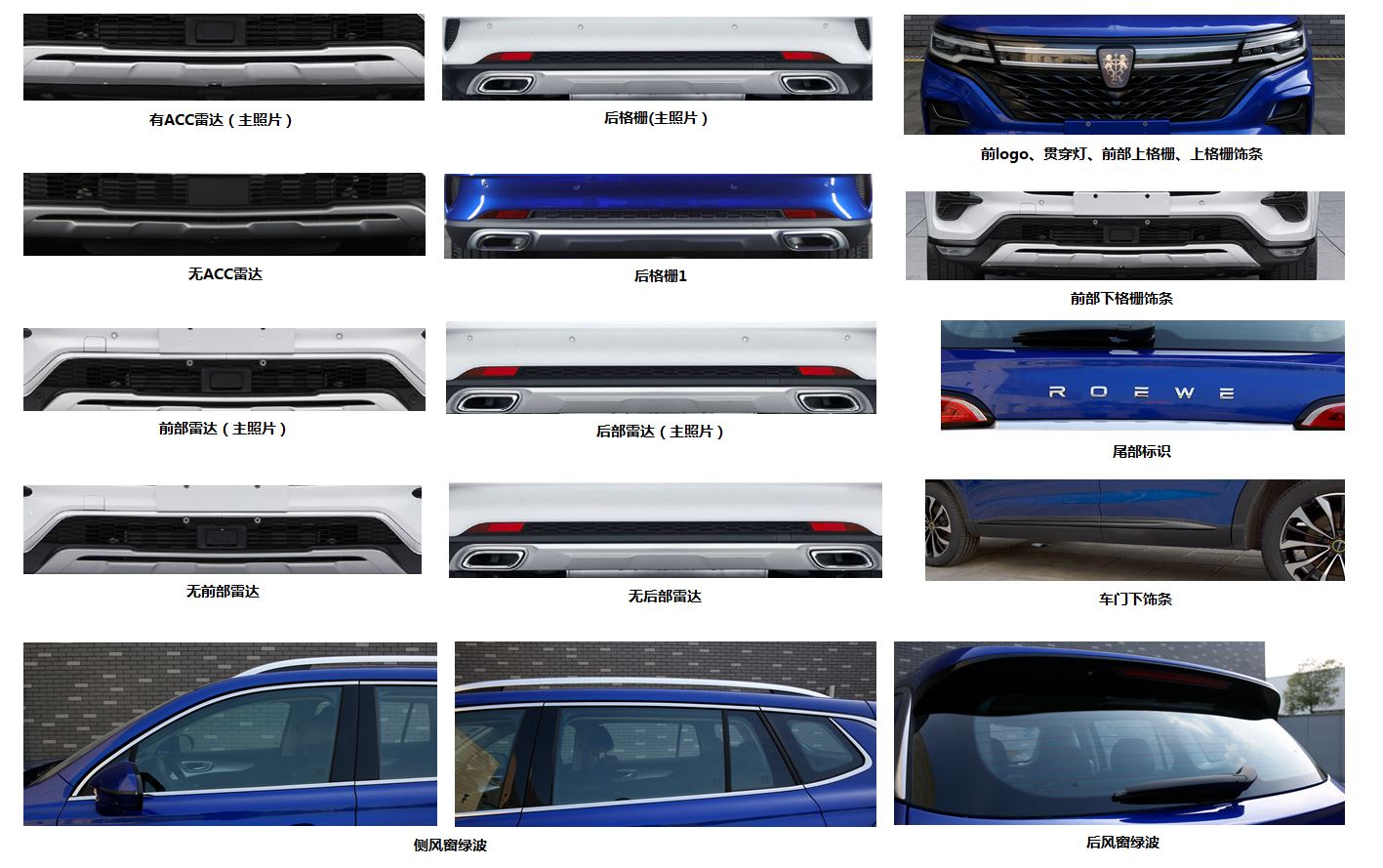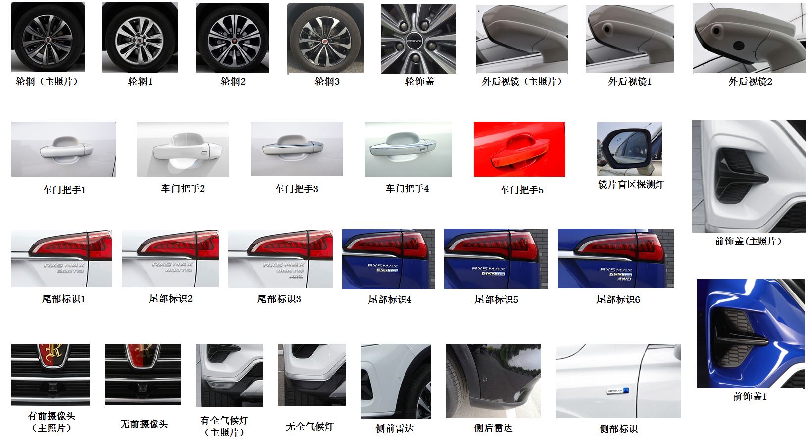 | 备注 | 选装轮辋、轮饰盖、外后视镜、车门把手、镜片盲区探测灯、前饰盖、尾部标识、侧前雷达、侧后雷达、侧部标识、后格栅、前logo、贯穿灯、前部上格栅、上格栅饰条、前部下格栅饰条、车门下饰条、侧风窗绿波、后风窗绿波,选装不带前摄像头、全气候灯、ACC雷达、前部雷达、后部雷达。ABS型号及生产企业:MK100,大陆泰密克汽车系统(上海)有限公司。发动机最大净功率:164kW。 | ||