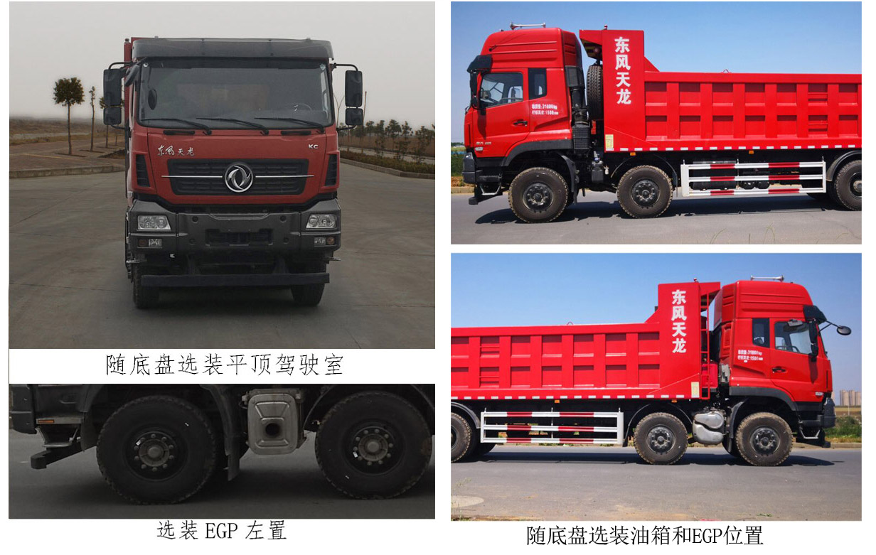 | 备注 | 1、货厢倾卸方式为后卸式。2、随底盘选装平顶驾驶室。3、选装箱体侧面结构及货箱后部结构。4、随底盘选装EGP左置,随底盘选装油箱和EGP位置照片。5、防护装置所用的材料材质:Q235,防护装置连接方式:螺栓连接,后部防护装置的断面尺寸(长×宽)mm:120×60,离地高度:480mm、460mm、440mm。6、该车装备有具有卫星定位功能的行驶记录仪。7、ABS生产厂家:东科克诺尔商用车制动系统(十堰)有限公司;型号:3631010-C2000。8、仅选用2050+4600+1350mm轴距。9、DDi11E385-60发动机对应的油耗值为40.0L/100km、DDi11E430-60发动机对应的油耗值为40.0L/100km、DDi11E465-60发动机对应的油耗值为40.0L/100km。 | ||