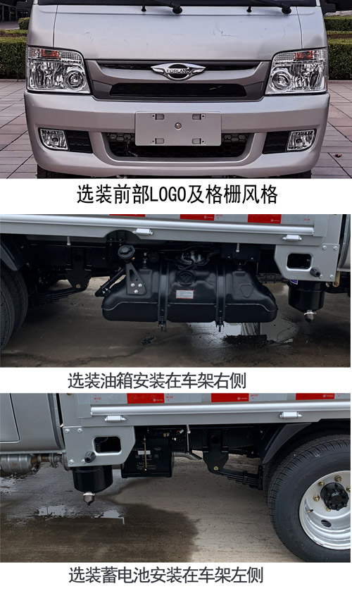 | 备注 | 发动机DAM15KL,DAM16KL对应的油耗值分别为7.5L/100km,7.5L/100km,分别对应最高车速100km/h,110km/h.ABS系统控制方式是双参数控制,ABS系统控制器型号是YF9,ABS系统控制器生产企业是武汉元丰汽车电控系统有限公司.选装前围覆盖件,选装货厢风格.选装货厢龙门架上方挂钩.选装前部格栅及LOGO风格.选装油箱安装在车架右侧.选装蓄电池安装在车架左侧. | ||