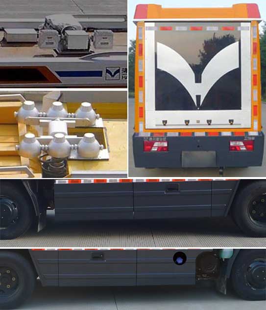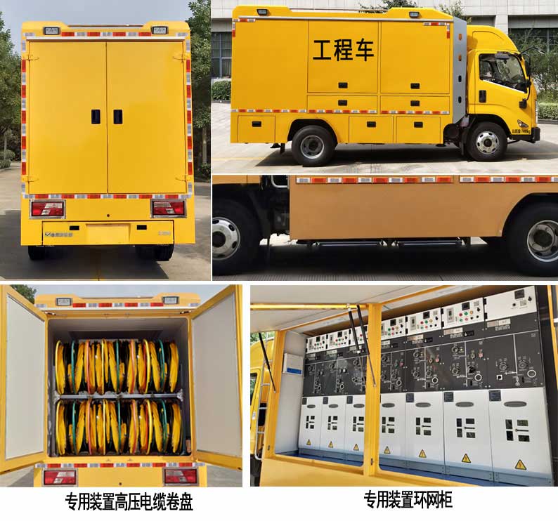 | 备注 | 车厢顶部封闭,不可开启。厢体上部选装不同型号的曲臂照明灯。选装两侧围板样式。选装后部工作门样式。选装不同数量的电缆卷盘所对应的整备质量不同。选装小型发电机,用于临时供电。专用作业装置电缆自动拖放机构、电缆等,用于电力抢险、抢修提供专用装备。选装平开门厢体结构外观时专用装置为环网柜、高压电缆卷盘,用于电力部门的应急抢修,满足用户不停电条件下的电力应急抢修作业;ABS系统型号: VIE ABS-II,ABS系统生产厂家: 浙江万安科技股份有限公司。侧防护,后防护均为裙板式结构,材料为复合材料,后防护下缘离地高度450mm。 | ||