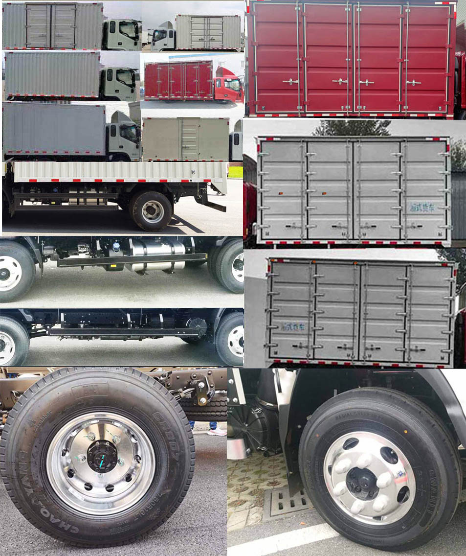 | 备注 | 1.车厢顶部封闭不可开启,选装不带导流罩;2.选装侧面双开门货厢以及不开门货厢、单开门和四开门货箱,货厢材料可选用瓦楞板,铁平板,铝平板,彩钢板,复合板等;选装货箱左右两侧开门,选装不同形式后门(双开/三开门/平板/瓦楞)及不同形式门锁;3.发动机HFC4DE2-2E对应的油耗申报值(L/100km)为11.4;4.侧面及后下部防护装置材料为Q235,连接方式为螺栓连接,后部防护装置断面尺寸(长×宽):120mm×60mm离地高度为490mm,同时选装Q235材质的单杆防护;5.ABS控制器型号/厂家:ABS 8/克诺尔商用车系统企业管理(上海)有限公司;6.选装不同型号的后视镜和尾灯,选装不同样式的保险杠.7.选装不同样式的侧后防护,其选装的侧面及后下部防护装置材料为Al-6061,连接方式为螺栓连接,选装的后部防护装置断面尺寸(长×宽):150mm×55mm离地高度为430mm;8.选装无备胎状态;可选装液压尾板,尾板收起状态的水平长度为280mm,当选装液压尾板时后部防护装置材料为510L,后部防护装置的断面尺寸(圆形)为:Φ115mm,离地高度为455/480mm,尾板质量为350Kg;9.选装铝合金轮毂; | ||