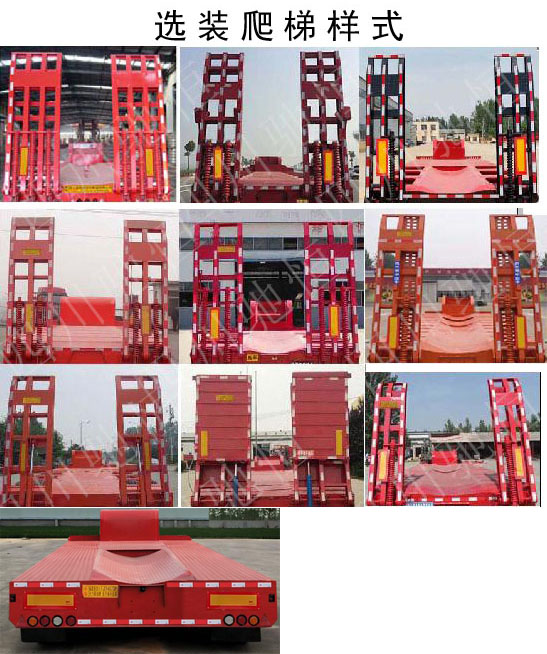 | 备注 | 仅可运输不可拆解物体,鹅颈部分不允许载货,鹅颈部分最大宽度为1500mm,选装尾部标识板安装位置,选装后组合灯具样式,选装号牌板样式.选装侧面样式,选装爬梯及爬梯样式,不安装爬梯时整车高度为:1650mm,1700mm,1750mm,货台空载离地高度为:1050mm,选装1000mm,1100mm,1150mm,车长/牵引销中心到最前端距离/轴距/后悬(mm)关系一一对应,ABS:型号:CM2XL-4S/2M;生产厂家:广州瑞立科密汽车电子股份有限公司;防护:侧、后防护装置材料:Q235B,与车辆连接方式为焊接,后部结构离地高为400mm.可代替后防. | ||