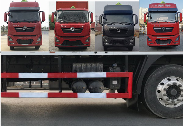 | 备注 | 选装平顶驾驶室;选装驾驶室前面罩;高顶驾驶室顶部气喇叭为选装件;驾驶室顶部选装“东风商用车”字样;驾驶室前角扰流板为选装件.蓄电池及储气筒可选装右置;厢体顶部封闭不可开启,厢体选装平面和瓦楞板结构,厢体可选装开侧门,不开侧门,选装后门结构,选装侧门型式及位置,厢体侧面板选装开百叶窗;选装尾板,尾板质量为550kg,尾板收起状态时的水平长度为295mm;选装尾板时仅选用截面尺寸为Φ121的后防护,后防护材质:Q235:连接方式:焊接:离地高度470mm;选装后踏步.该车为危险品运输车,专门用于运输具有独立容器(瓶,袋,桶)包装的废弃物,类项号:9;侧防护:材质Q235,螺栓连接;后下防护:材质Q235,螺栓连接,断面尺寸120×60mm,离地高度480mm、460mm、440mm;安装具有卫星定位功能的行驶记录仪;ABS型号/生产厂家:ABS 8/东科克诺尔商用车制动系统(十堰)有限公司.选装EBS,EBS型号/生产厂家:EBS5/东科克诺尔商用车制动系统(十堰)有限公司.排气管前置,前轴装备盘式制动器,装备限速装置,限速80km/h.发动机DDi75E350-60、L9NS6B400对应的油耗申报值(L/100km)分别为38.0,38.0.该车后轴采用空气悬架,转向轮安装爆胎应急防护装置;该车型可选装ETC车载装置. | ||
