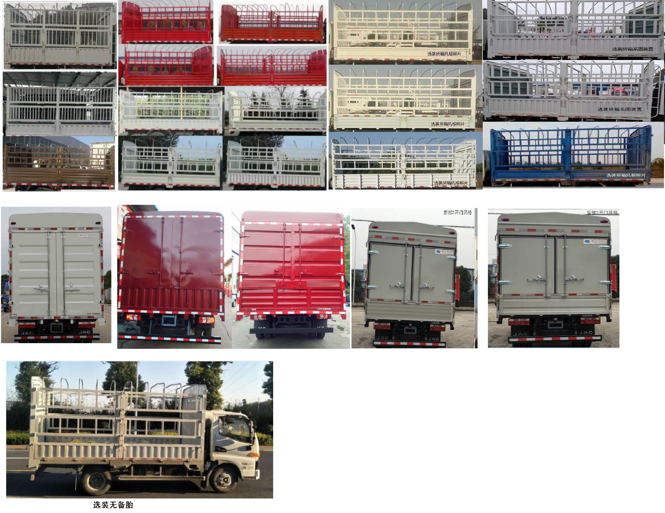 | 备注 | 1.选装排半驾驶室,选装导流罩,货箱底板到仓栅顶部高度为1300mm,1800mm,2000mm,2200mm,2300mm,1450mm;2.发动机HFC4DB3-2E,HFC4DB3-2E3,HFC4DE2-2E,HFC4DE2-2E2对应的油耗申报值(L/100km)为11.4,11.3,11.4,11.4;3.ABS型号/厂家:CM4XL-4S/4M /广州瑞立科密汽车电子股份有限公司,选装ABS,ABS型号/厂家: VIE ABS–Ⅱ,浙江万安科技股份有限公司,ABS 8克诺尔商用车系统企业管理(上海)有限公司;4..侧面及后下部防护装置材料为Q235,连接方式为螺栓连接,后部防护装置断面尺寸(长×宽):120mm×60mm,离地高度为440mm,选装侧后防护,侧面及后下部防护装置材料为Al-6061,连接方式为螺栓连接,选装的后部防护装置断面尺寸(长×宽):150mm×55mm离地高度为430mm;6.选装货厢风格;7.选装货箱系固装置,选装不同样式的进气格栅;8.随底盘选装后部灯具;随底盘选装无备胎状态;选装铝合金轮辋 | ||