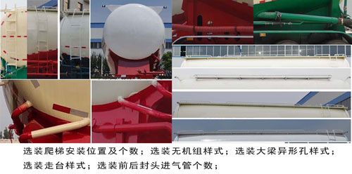 | 备注 | 罐体有效容积55.5立方米,罐体外形尺寸:罐体总长10500,前后封头直径2200,罐体最大截面高3450,宽度2550.选装无机组样式时,车长11330mm,整备质量为9100kg,额定载质量为30900kg,选装爬梯安装位置及个数,选装大梁异形孔样式,选装走台样式,选装前后封头进气管个数.ABS生产厂为广州瑞立科密汽车电子股份有限公司,型号为CM2XL-4S/2M.侧、后防护材料均为Q235B,连接方式均为焊接连接,断面尺寸150mm×50mm,离地高度470mm.顶部封闭不可开槽,后部不可开启. | ||