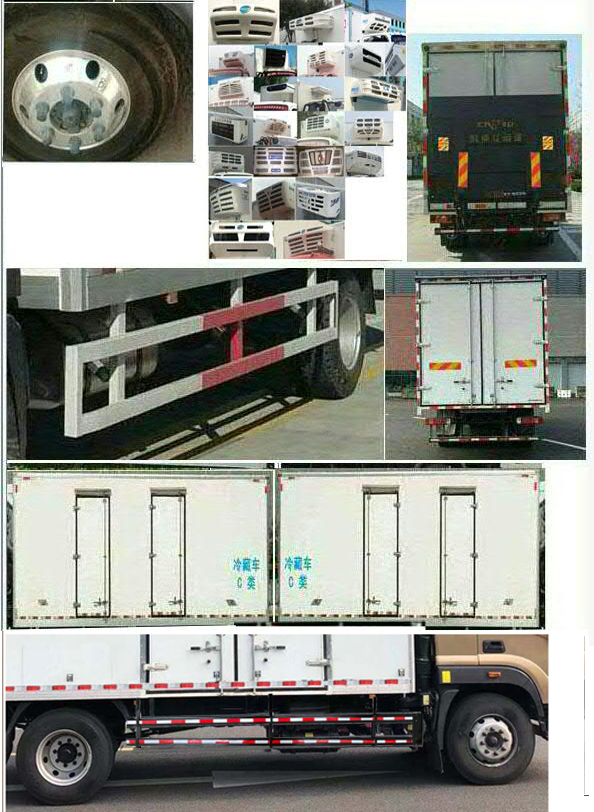 | 备注 | 1.货厢顶部封闭,不可开启;2.可选装同等功率制冷机组,可选装导流罩,可选装左/右两侧单/双侧开门,选装无侧开门货厢风格,选装后部三开门,安装符合规定的具有卫星定位功能的行驶记录仪,选装前围及灯具,选装液压尾板,尾板重量550kg,收起时水平长度为300mm.选装铝合金轮辋,选装货箱左右两侧两个单开门,选装货箱后部双/四锁杆风格,选装货箱后部五对固定折页风格,选装货箱内部挂钩及导轨结构;3.选装塑料侧防护,侧面防护装置材料为FRP纤维复合材料,侧面防护装置材料为热板A-3.0,后下部防护装置材料为510L,后部防护装置截面尺寸120mm×60mm,均为螺栓连接.后下防护装置离地高度465mm;4.ABS系统型号:ABS-E;生产企业:威伯科汽车控制系统(中国)有限公司.ABS-VI.E;生产企业:广州瑞立科密汽车电子股份有限公司.5.发动机YC6JA260-50,D45TCIE1,ISF4.5S5210对应油耗值分别为26.4,26.3,26.3.选装后部货箱风格,选装侧防护风格,侧防护材料材质:热板A-3.0-GB/T 709,选装高顶驾驶室,选装600L油箱位置,选装储气筒和电瓶位置,选装不同风格导流罩,选装600L油箱. | ||
