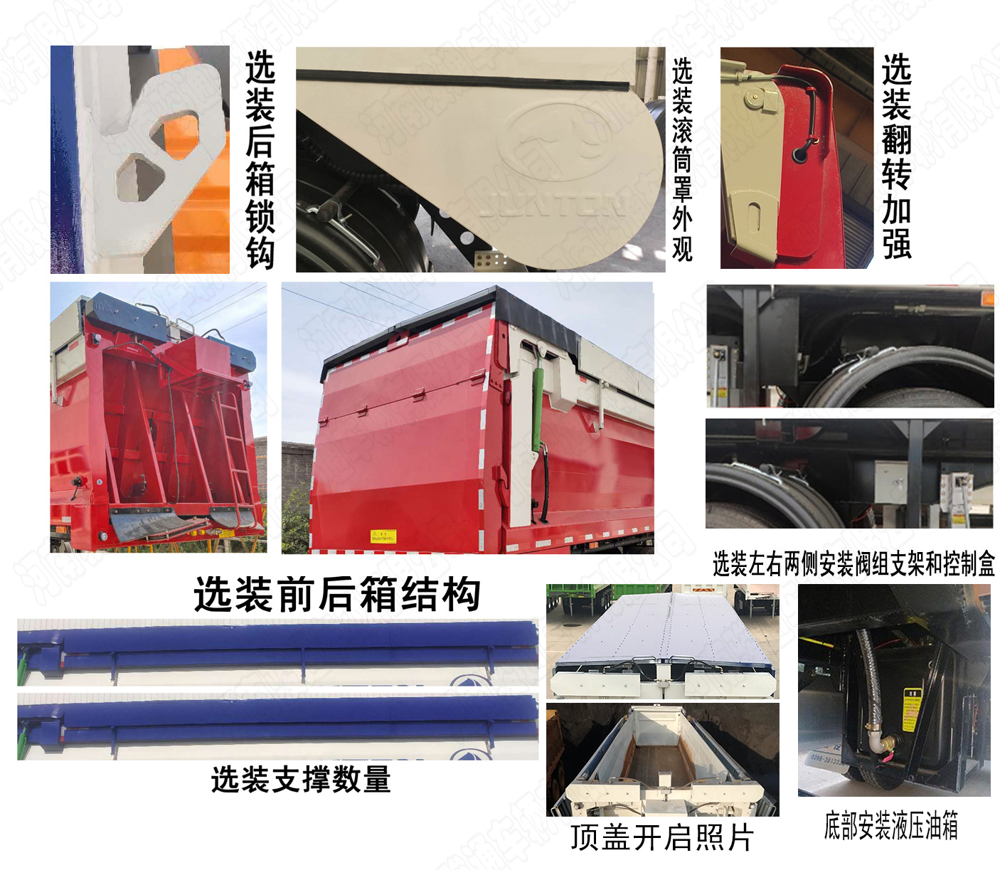 | 备注 | 该产品不能举升自卸,无自卸举升装置,该车仅用于粮食收集及运输.后部不可整体开启.该车在后部和侧面粘贴反光标识.该车用于散装粮食运输.该车顶部用硬质环保盖封闭,可开启;卸货方式为传送带式,具体为后部液压马达驱动减速机滚筒,带动传送带实现卸货.侧防护,后防护与车架为螺栓连接,材质均为Q345,后下部防护装置断面尺寸:120×50mm,离地高度500mm.ABS型号:CM2XL 生产厂家:广州科密汽车制动技术开发有限公司.车长/牵引销到车辆最前端的距离/轴距/后悬(mm)对应关系为:9550/1525/3870+1310+1310/1535;9450/1525/3870+1310+1310/1435;9250/1475/3720+1310+1310/1435;9050/1475/3520+1310+1310/1435.底部安装有液压油箱,选装前后箱外观,选装滚筒罩、后锁勾外观,选装左右两侧安装阀组支架和控制盒. | ||