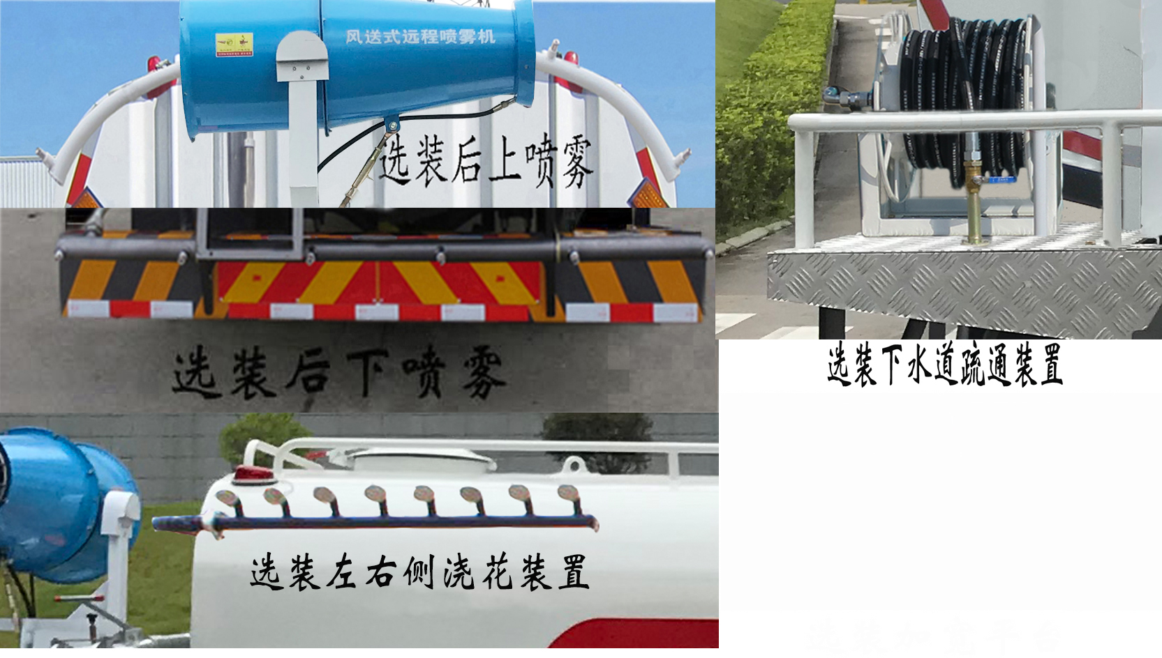 | 备注 | 仅选用4500mm轴距;罐体外形长轴×短轴×长度(mm):2400×1450×4650,介质名称为:丙酮水溶液;介质密度:955千克/立方米;罐体有效容积:11.05立方米;侧防护及后部防护装置的材料材质:Q235A;连接方式为螺栓连接;后部防护装置的断面尺寸(宽×高)mm:60×230;后部防护装置的离地高度480mm;可选装:1、后上喷雾装置;2、后下喷雾装置;3、下水道疏通装置;4、左右侧浇花装置;5、后部作业指示灯;6、发电机组安装位置;7、选装自吸装置;以上6种选装配置引起的重量及整车尺寸变化可以忽略不计;该车装备有罐体,水泵,管道系统等,用于清洗路面,对路面喷洒水降尘等作用;ABS型号/生产厂家:J ABS/焦作博瑞克控制技术有限公司。 | ||