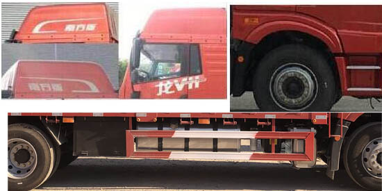 | 备注 | 车厢底板到顶部高度为2500mm,2645mm.选装平顶驾驶室.选装导流罩.选装改前围的驾驶室.选装改前脸的驾驶室.选装高顶驾驶室,选装新结构的保险杠.驾驶室侧面选装新的喷涂.选装不同结构的翼子板.选装内插式货箱.选装不同瓦楞结构的货箱.选装多节边板的货箱.选装不同后部结构的货箱.侧防护装置材质为R13钢,连接方式为螺栓连接,后下部防护装置材质为Q325 钢,连接方式为螺栓连接,后部防护离地高度490mm,断面尺寸为120×90mm.安装具有卫星定位功能的行驶记录仪.ABS生产厂家/型号:浙江万安科技股份有限公司/VIE ABS-II.油耗值26.3对应发动机CA4DLD-18E5,CA4DK1-22E5,CA4DK1-18E5,CA4DH1-18E5;油耗值26.5对应发动机CA6DH1-18E5,CA6DH1-22E5,CA6DH1-24E5,CA6DLD-18E5,CA6DLD-22E5,CA6DLD-18E52,CA6DLD-22E52;油耗值26.8对应发动机CA6DLD-24E5.前轴选装盘式制动器.选装限速装置,限速89km/h. | ||