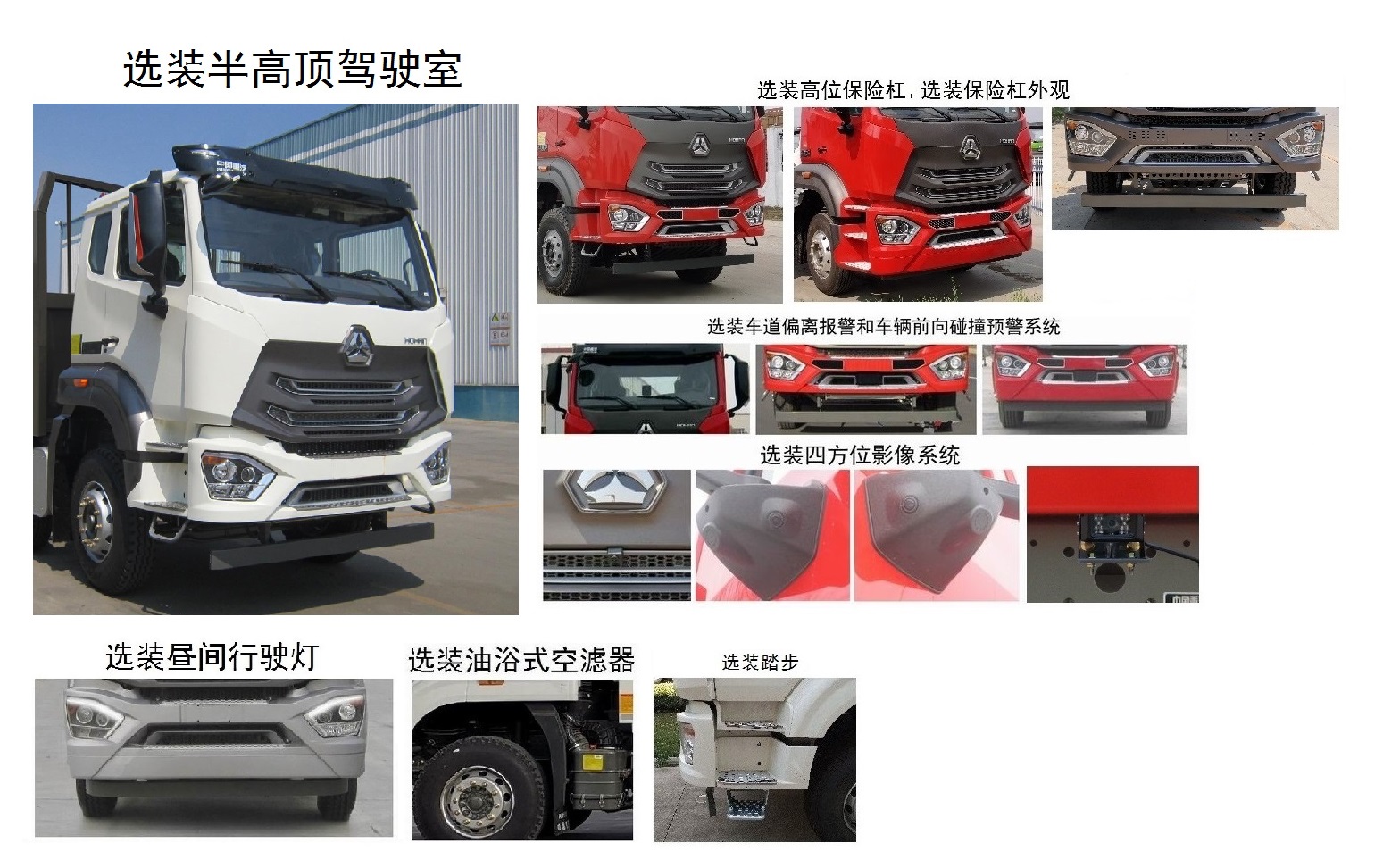 | 备注 | 该车装半高顶驾驶室时,整车高度为3180mm;装高顶驾驶室时,整车高度为3620mm。选装高位保险杠。选装保险杠外观。选装踏步。选装昼间行驶灯。选装油浴式空滤器。选装车道偏离报警和车辆前向碰撞预警系统。选装四方位影像系统。选装昼间行驶灯。选装油浴式空滤器。驾驶室准乘人数与额定载质量参数一一对应。车长与轴距、后悬尺寸对应关系如下(单位:mm):11200/1800+5000/2850;11400/1800+5000/3050;12000/1800+5600/3050。该车装MC09.34-50发动机时,准拖挂车总质量为18000kg;装MC09.36-50、MC09.38-50、MC09.40-50、MC11.44-50、MC13.48-50发动机时,准拖挂车总质量为18000kg或21000kg。该车装MC09.34-50、MC09.36-50、MC09.38-50、MC09.40-50、MC11.44-50、MC13.48-50发动机对应的油耗申报值均为32.0L/100km。侧面防护装置所用材料材质为Q235A,连接方式为螺栓连接;后部防护装置所用材料材质为Q235A,连接方式为螺栓连接+焊接,断面尺寸为φ120mm,离地高度为480mm。中置轴挂车牵引杆深入量1590mm(可选1400mm,1900mm),牵引杆连接器最大垂直静载荷1000kg。ABS系统型号为446 004 6300,生产企业为威伯科汽车控制系统(中国)有限公司。该车可选装限速装置,限速89km/h。安装具有卫星定位功能的行驶记录仪。选装新款面罩。选装ETC车载装置。 | ||