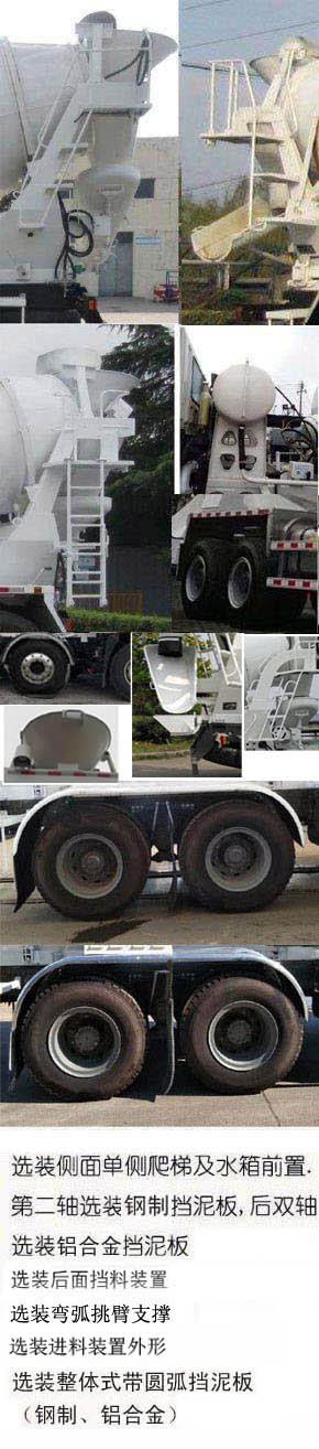 | 备注 | 搅动容量为8立方米.罐体总长度(含封头)为5256mm,最大直径为φ2360mm.罐体安装角度为14.5度.选装侧面单侧爬梯及水箱前置.第二轴选装钢制挡泥板,后双轴选装铝合金挡泥板.选装整体式带圆弧挡泥板(碳钢、铝合金).选装不同的驾驶室外形及正后放大号牌处外形.选装后面挡料装置及弯弧挑臂支撑.选装进料装置外形.侧后防护材料为Q235,螺栓连接;后防护断面尺寸60×150mm,离地高480mm.该车装有卫星定位功能的行驶记录仪.ABS系统控制器型号/生产企业:3550X-1010/东科克诺尔商用车制动系统(十堰)有限公司.ISGe5-320,ISGe5-340,WP9H310E50,WP9H336E50对应的油耗值(L/100km)为:37.1,37.1,37.0,37.0. | ||