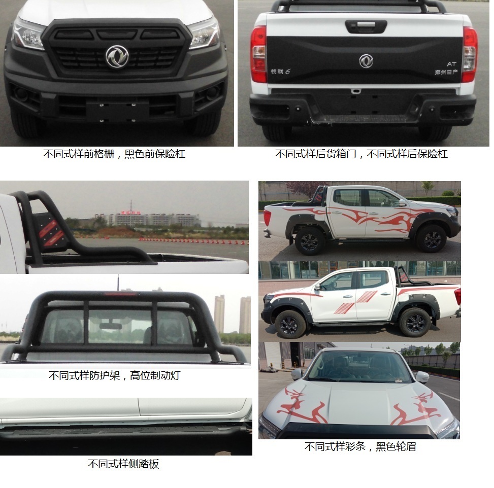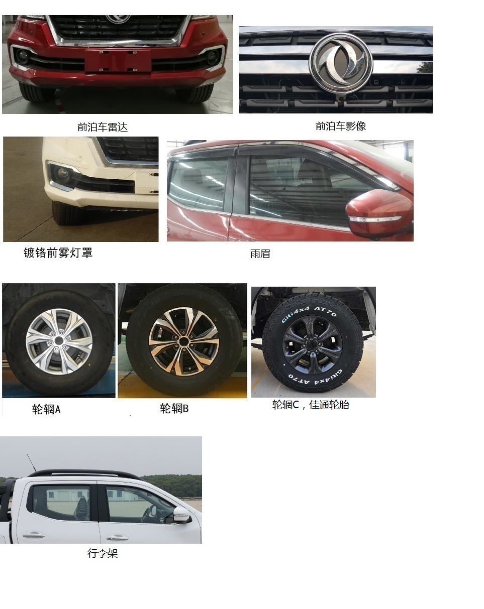 | 备注 | 选装不同式样轮辋、防护架、后保险杠.选装前泊车影像、前泊车雷达、镀铬前雾灯罩、雨眉、行李架、高位制动灯.选装佳通轮胎,选装黑色前保险杠、黑色轮眉,选装不同式样前格栅、防护架、侧踏板、后货箱门,选装不同式样车身彩条.选装"一字型"后保险杠时,车身长度为5290mm、后悬为1230mm.选装黑色前保险杠、黑色轮眉、不同式样后保险杠时车辆长度为5345mm,车辆宽度为1900mm,前/后悬为960mm/1235mm,接近角/离去角为28°/26°,额定载质量460kg,整备质量1990kg.选装行李架时车辆高度1850mm.ABS型号:ESP9;ABS生产厂:博世汽车部件(苏州)有限公司.发动机最大净功率118kW. | ||