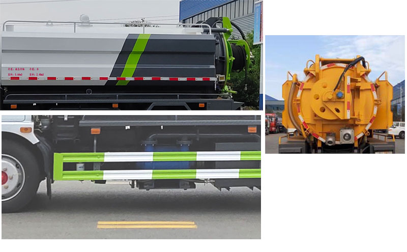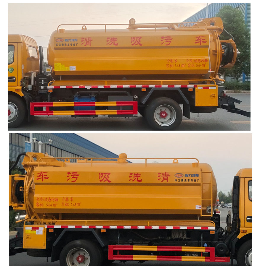 | 备注 | 1,仅用轴距3800mm;该车用途为清洗吸污,主要专用装置为真空泵和罐体.2,污水罐有效容积:5.64立方米,介质:液态污物,密度:800千克/立方米,外形尺寸(直段长×直径)(mm):4000×1450,罐体壁厚6.0mm,清水罐有效容积:2.3立方米,介质:水,密度:1000千克/立方米,罐体为异形罐体,异形罐尺寸为:长×宽×高=2900×560×1000,选装不带卷帘门罐体结构时,污水罐有效容积不变,清水罐有效容积:2.48立方米,介质:水,密度:1000千克/立方米,罐体为异形罐体,异形罐尺寸(mm)为:长×宽×高=3600×560×1000,两罐独立,且不能同时满载;清洗功能时用清水罐,吸污功能时用污水罐.清水罐罐体壁厚4.0mm,罐体材料均为碳钢Q235.3.防护材料Q235,选装真空泵安装在车辆左侧,选装后部结构样式。侧、后防护均采用焊接连接,后防护截面尺寸120mm×50mm,后防护下边缘离地高度400mm;4,随底盘选装驾驶室;选用底盘轮距为前1745mm/后1630mm时,整车宽为2250mm;ABS型号/厂家:ABS/ASR-24V-4S/4M/襄阳东风隆诚机械有限责任公司.选装罐体外观。 | ||
