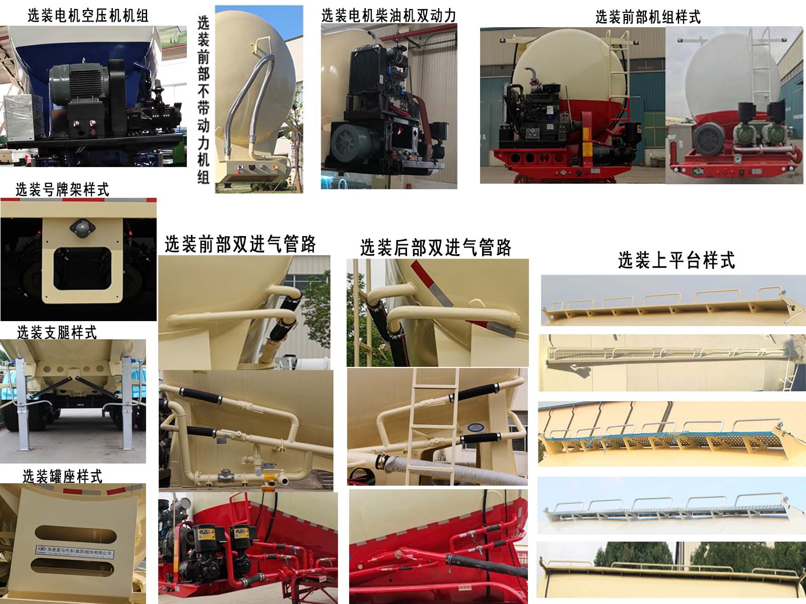 | 备注 | 1.罐体有效容积:40.5立方米;运输介质为粉煤灰(密度为830kg/m3),罐体外形尺寸:长(含封头)8904mm,最大宽度2526mm,最大截面高3146mm,前后封头直径1900mm。2.选装前部不加装机组,选装电机空压机机组,选装电机柴油双动力机组及新款机组样式,选装爬梯安装位置,选装上平台、罐座、支腿、号牌架样式、前后双进气管路和排气阀。3.侧面防护装置材料为Q235,连接方式为螺栓连接,后下部防护装置材料为Q235,连接方式为焊接,截面尺寸为50mm×120mm,离地高度430mm。4.ABS系统控制器型号/生产企业:CM2XL-4S/2M/广州科密汽车电子控制技术股份有限公司。5.顶部封闭不可开槽,后部不可开启。 | ||