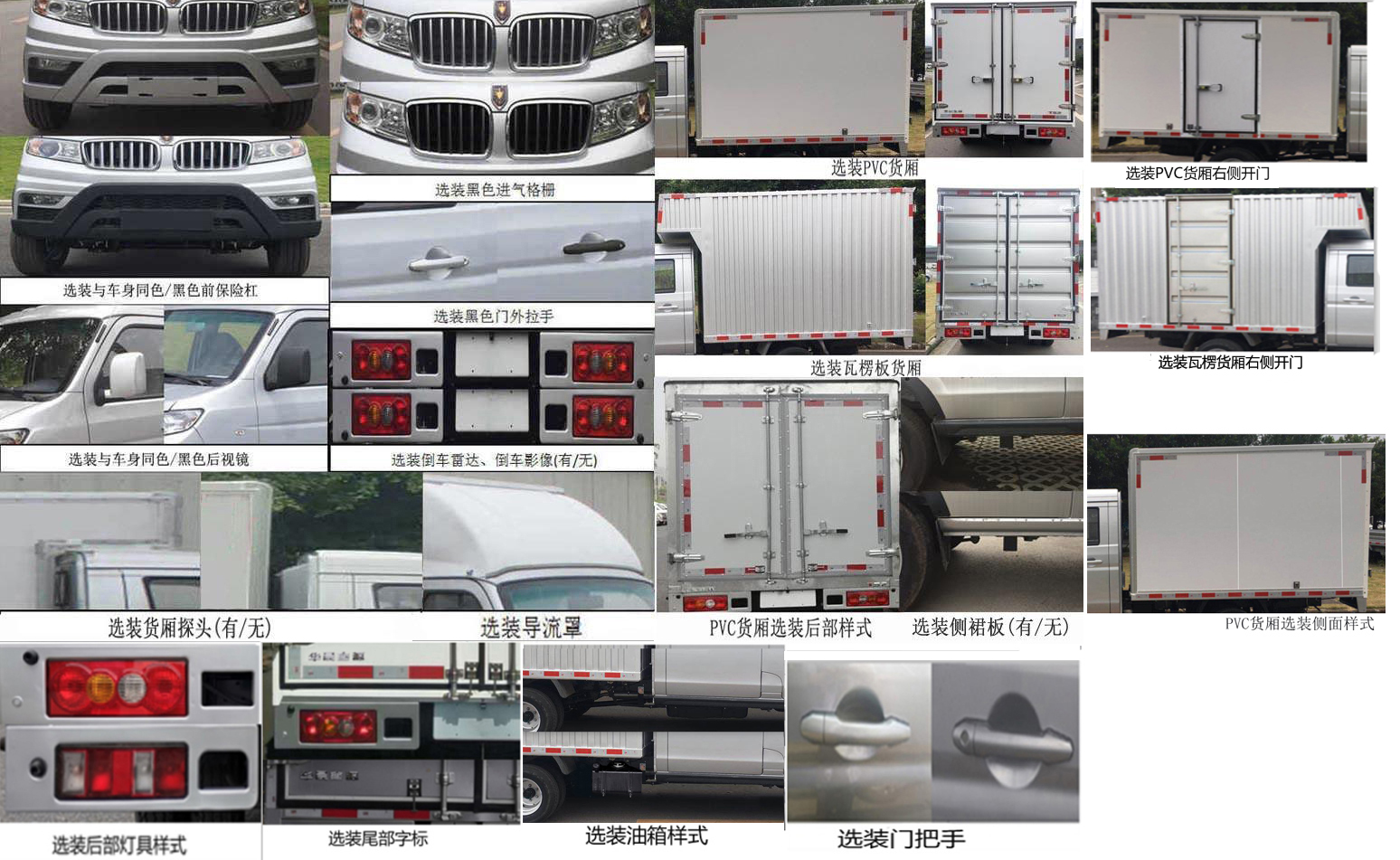 | 备注 | 车厢顶部封闭,不可开启.选装(MP5,与车身同色/黑色前保险杠/后视镜,黑色进气格栅/门外拉手,倒车雷达,倒车影像,导流罩,货厢探头,PVC/瓦楞货厢,PVC货厢后部样式/侧面样式,后部灯具样式,侧裙板,门把手样式,尾部字标,侧开门,油箱样式).装配瓦楞板货厢对应的整车高度/整备质量:2670mm/1710kg.整车尺寸对应关系:5548×1795×2480,5548×1795×2580,5548×1795×2670,5548×1795×2480,5548×1795×2580.货厢内尺寸对应关系:2605×1750×1600,2605×1750×1700,2605×1740×1800,2605×1700×1580,2605×1700×1680.SWC15M发动机净功率72KW,油耗申报值8.6L/100km.ABS型号/生产企业:YF8/武汉元丰汽车电控系统有限公司.该车型符合国六标准B阶段限值要求. | ||