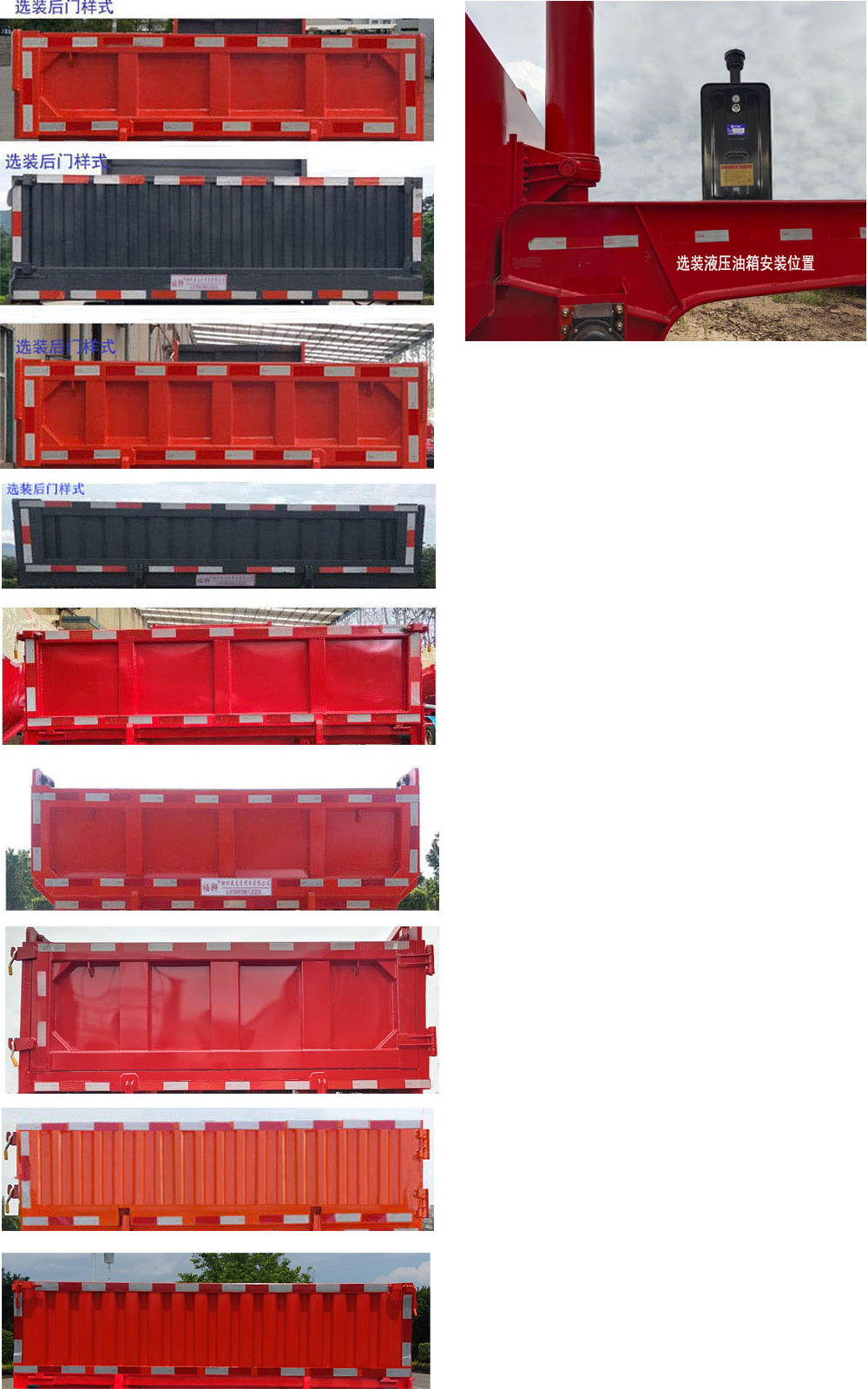 | 备注 | 该车为鹅颈结构,卸货方式:后卸式,因油缸行程不同而产生多个高度.总长/轴距/后悬/离去角的对应关系为(mm/mm/mm/°):10280/6150+1310+1310/1020/34;9980/5850+1310+1310/1020/34;9730/5600+1310+1310/1020/34.侧面及后下部防护装置材质均为Q235;侧面防护装置连接方式为螺栓连接,后防护装置连接方式为焊接;后部防护装置的断面尺寸:140mm×50mm(选装后部防护装置断面尺寸160mm×60mm);后护栏离地高度450mm.ABS生产厂家/型号:广州瑞立科密汽车电子股份有限公司/CM2XL-4S/2M;威伯科汽车控制系统(中国)有限公司/4005000880.选装后门样式;选装液压油箱安装位置;栏板选装外部造型. | ||