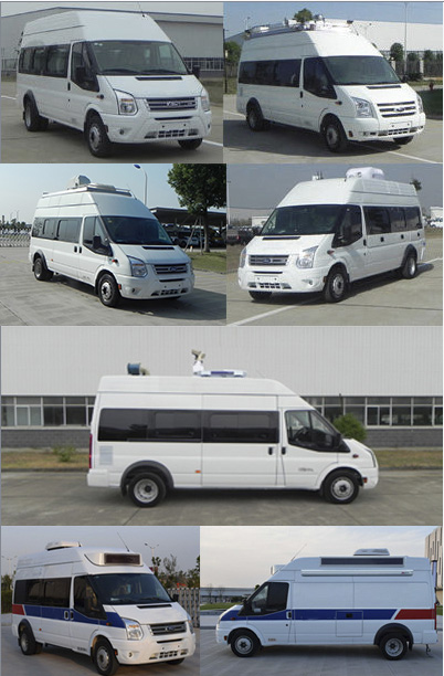 | 备注 | 随底盘选装新前脸、格栅,选装新款前大灯、后尾灯。选装车顶前额位置凸台(可选装凸台显示屏),车顶单侧或两侧可选装显示屏、遮阳蓬。选装尾门位置爬梯,车身一侧或两侧选装玻璃上掀窗或盲窗上掀窗,选装发电机及发电机舱门。车顶可单独或部分选装设备平台、换气扇、空调、升降照明灯、场地照明灯、气象仪。不装车顶设备高2570mm,选装车顶设备平台高2800mm,选装车载空调高2960mm,选装车顶多美达车载空调高2875mm,选装升降照明灯(带摄像头)高3130mm,选装升降照明灯(无摄像头)高2900mm,选装扫描仪车高3190mm,选装升降照明灯(带另一款摄像头)高3260mm,选装气象仪高3490mm。A.工作桌、设备柜、检测集成系统,对应装备质量为3480kg;B.工作柜组合、检测仪、集成电源系统等专用装置,对应装备质量为3740kg;C.发电机、绕线盘、集成电源系统、检测仪等专用装置,对应装备质量为4000kg。ABS系统控制器型号: 6C11 2M110 A*或CC11 2C405 A*或EV7021,生产厂家:博世汽车部件(苏州)有限公司。发动机最大净功率为101kw。整备质量为4000kg时,对应载客数为2或3人。 | ||