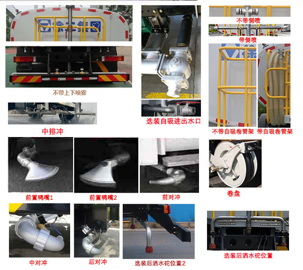 | 备注 | 该车主要专用装置为水罐、水路及清洗装置,用于城镇环境清洗及清洁作业;选用4900mm轴距的底盘,罐体有效容积8立方米,罐体外形尺寸(长轴×短轴×长度)(mm):2280×1290×3900,装运介质为水,介质密度为1000Kg/m3;1.车头安装高压喷水架装置时,外形尺寸长9180mm,前伸1050mm,接近角10°,离去角11°,后悬尺寸2000mm,整备质量10180kg;2.车头安装前自动水炮时,外形尺寸长8730mm,前伸600mm,接近角12°,离去角11°,后悬尺寸2000mm,整备质量9900kg;3.安装后雾炮(配加宽工作平台)车头不选装时,外形尺寸长8555mm,接近角14°,离去角9°,后悬尺寸为2425mm,整备质量10180kg;4.不安装选装装置时,外形尺寸长8130mm,接近角14,离去角11,后悬尺寸2000mm,整备质量9900kg;选装罐体涂装外观、侧喷鸭嘴、高压水路附件、预留接口、右侧进水口、尾部不带上下喷雾、自吸进出水口、中排冲、鸭嘴、对冲、后洒水砣位置、侧喷管、自吸卷管架、卷盘;侧面防护装置材质为Q235B,连接方式为螺栓连接;后防护装置材质为Q235B,连接方式为焊接;后部防护装置的断面尺寸为180×60mm,离地高度为500mm;电池种类/生产企业:磷酸铁锂电池/宁德时代新能源科技股份有限公司.电机种类/电机型号/电机生产企业/电机控制器型号/电机控制器生产企业/电机额定功率/电机峰值功率:永磁同步电机/TZ370XS-LKM1305/苏州绿控传动科技股份有限公司/KTZ54X42S5MC54SA02/上海鑫国动力科技有限公司/100kw/185kw.ABS型号/企业:VIE ABS-Ⅱ/浙江万安科技股份有限公司. | ||