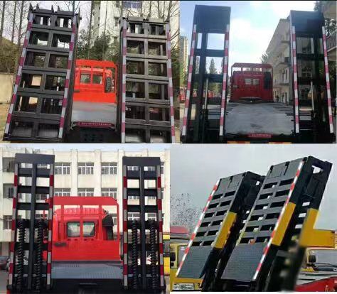 | 备注 | 1,该车仅用于运送不可拆解物体.选装驾驶室前脸局部造型变化,选装导流罩, 遮阳板,选装后视镜支架样式;选装不带爬梯结构和选装爬梯样式.2,侧,防护材料:Q235,连接方式:侧防护与平板纵梁采用焊接连接,后防护连接方式:螺栓连接;后防护断面尺寸/离地高:60×120/480(mm). 3,仅选轴距1950+3300+1350,1950+3600+1350;外形尺寸长,前悬,轴距,后悬对应关系对应关系:10700/1475(1515)/1950+3300+1350/2625(2585),11200/1475(1515)/1950+3300+1350/3125(3085),11200/1475(1515)/1950+3600+1350/2825(2785),11500/1475(1515)/1950+3600+1350/3125(3085);4,该车安装带有卫星定位功能的行驶记录仪。ABS生产厂家;东科克诺尔商用车制动系统(十堰)有限公司, 浙江万安科技股份有限公司,型号:3631010-C2000,VIE ABS-Ⅱ.5,发动机YC6A290-50,YC6L350-50,ISL8.9-340E51A,WP7.300E51,WP8.340E51,油耗值分别对应为:36.1L/100Km,36.2L/100Km,36.3L/100Km,36.5L/100Km,35.6L/100Km. | ||