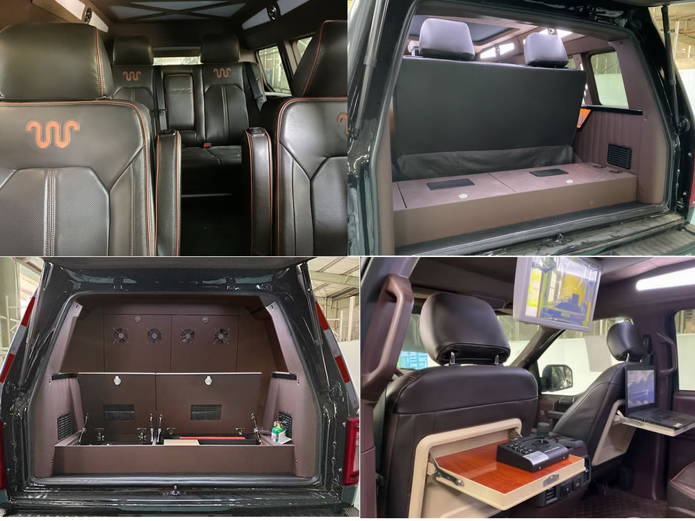 | 备注 | 1:主要专用装置为车载云台、超短波车载台、视屏会议终端等,;2:专用功能:用于应急巡逻、安全监测,数据传输,3:.ABS型号为ABS9,ABS生产企业:Bosch;4:.发动机最大净功率为280KW;5:选装不同前脸、选装两侧固定踏板。选装活动桌板,吸顶显示器,车载云台,电脑。该车不使用车型年份。选装不同前脸和前保险杠,选装高顶造型,当选装高顶造型时其外型尺寸高为2370mm。 | ||