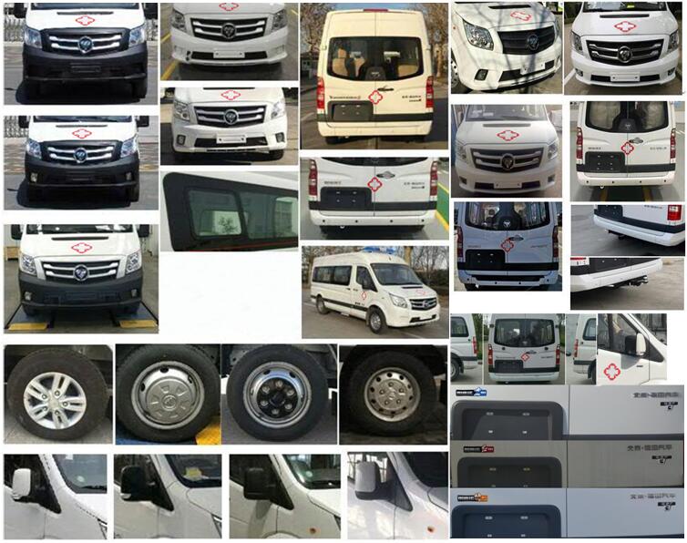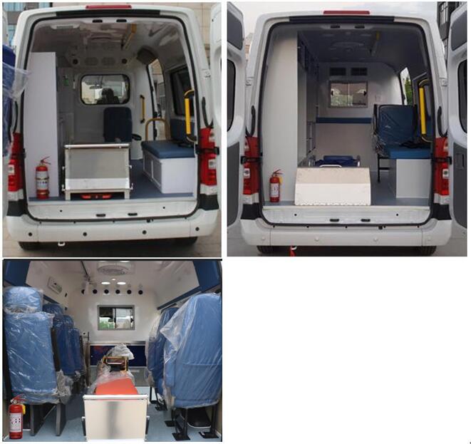 | 备注 | 1.随底盘选装前雾灯、平推窗、前格栅、前保险杠颜色、铝轮、轮罩、轴头盖、倒车雷达、电动外挂侧滑门踏板、后视镱、中高顶车身;2.选装异形警灯、嵌入式警灯、换气扇、四周爆闪灯、警灯凸台;3.选装嵌入式警灯时整车高度为:中顶2415mm,高顶2640mm,超高顶2720mm;选装警灯凸台装警灯、换气扇时整车高度为:中顶2530mm,高顶2755mm,超高顶2835mm;车顶装警灯、选装异形警灯时整车高度为:中顶2560mm、2590mm,高顶2785mm、2815mm,超高顶2865mm、2895mm;4.发动机最大净功率为130kw;ABS型号:YF8,生产企业:武汉元丰汽车电控系统有限公司;选装有卫星定位功能的行驶记录仪和限速装置,发动机ECU限速,限速100km/h;5.车内配备有警灯警报系统、医疗器械柜、氧气瓶、担架等专用装置;6.该车型可选装ETC车载装置. | ||