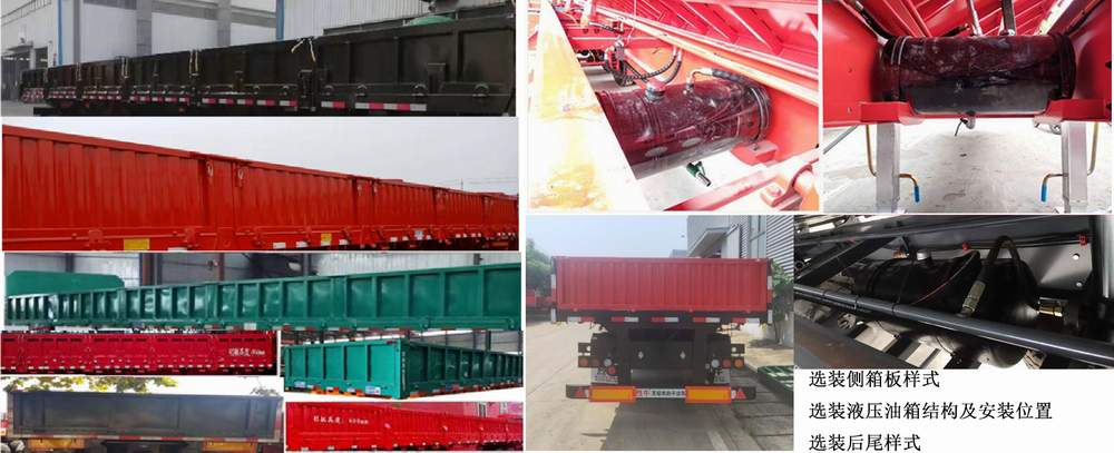| 备注 | 该车卸货方式为侧卸;选装前挡板结构,选装侧面及后面栏板样式,选装栏板开启形式,选装液压油箱结构及安装位置,选装后尾样式;牵引销至车辆最前端的距离/车长/轴距/后悬尺寸对应关系(mm):1400/13000/6830+1310+1310/2150,1300/13000/6830+1310+1310/2250,1200/13000/6830+1310+1310/2350,1300/12500/6630+1310+1310/1950,1200/12500/6830+1310+1310/1850,1300/12000/6430+1310+1310/1650,1100/12000/6430+1310+1310/1850;采用ABS系统控制器型号分别为:CM2XL-4S/2M;400500×××0;XH-GQ4S2M-E01;生产厂家分别为:广州瑞立科密汽车电子股份有限公司;威伯科汽车制动系统(中国)有限公司;广州市西合汽车电子装备有限公司;侧防护及后下部防护装置所用材料材质均为Q235B,后下部防护连接方式为焊接,选装侧防护为螺栓连接,后下防护断面尺寸(mm):160×65,离地高度为480mm。 | ||