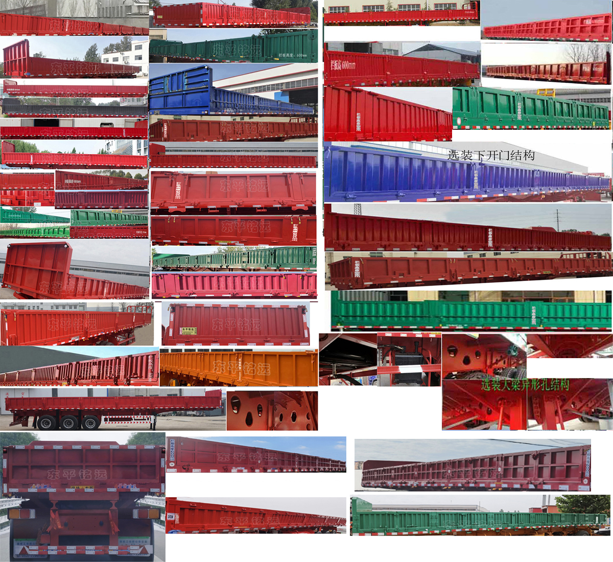 | 备注 | 卸货方式为:侧卸;选装前挡板结构;选装侧面栏板样式,选装栏板样式,栏板样式可左右选装,每边开扇数可选4开扇,5开扇,6开扇,立柱可选内插和外插及隐形锁杆样式,选装下开门.对开门和吊开门;选装侧面合页,选装后部结构;选装号牌板样式,选装液压油箱的安装位置,选装液压油箱为圆形或方形,选装大梁异形孔结构;后部选装1只或2只后牌照灯,选装后组合灯/后雾灯为圆形结构;ABS:型号:CM2XL-4S/2M;生产厂家:广州瑞立科密汽车电子股份有限公司,侧,后防护装置均采用Q235B,与车辆采用焊接,后防护装置的断面尺寸为140mmx55mm,离地高度为480mm | ||