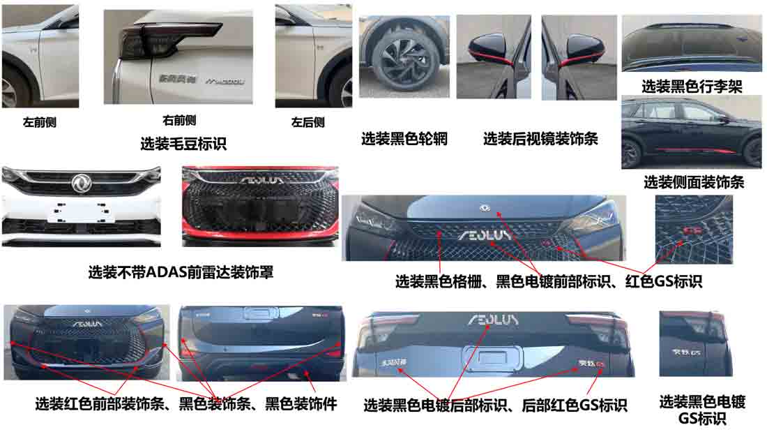 | 备注 | 选装LED前大灯、前雾灯、黑色车顶、ADAS摄像头和光照雨量传感器、ADAS前雷达装饰罩、轮辋装饰罩、前保险杠、230T尾标、格栅和前部标识、360度全景影像、后部标识、毛豆标识、不带ADAS前雷达装饰罩、黑色轮辋、后视镜装饰条、黑色行李架、侧面装饰条、黑色格栅、黑色电镀前部标识、红色GS标识、红色前部装饰条、黑色装饰条、黑色装饰件、黑色电镀后部标识、后部红色GS标识、黑色电镀GS标识。ABS型号:MK100;生产厂家:大陆泰密克汽车系统(上海)有限公司。发动机最大净功率为105kW。主照片保险杠对应前悬910mm,车长4610mm;选装照片保险杠对应前悬920mm,车长4620mm。油耗申报值6.70对应催化器前级:A14TS C002;后级:A14TS C003,油耗申报值6.60对应催化器前级:A14TS C111;后级:A14TS C112。 | ||