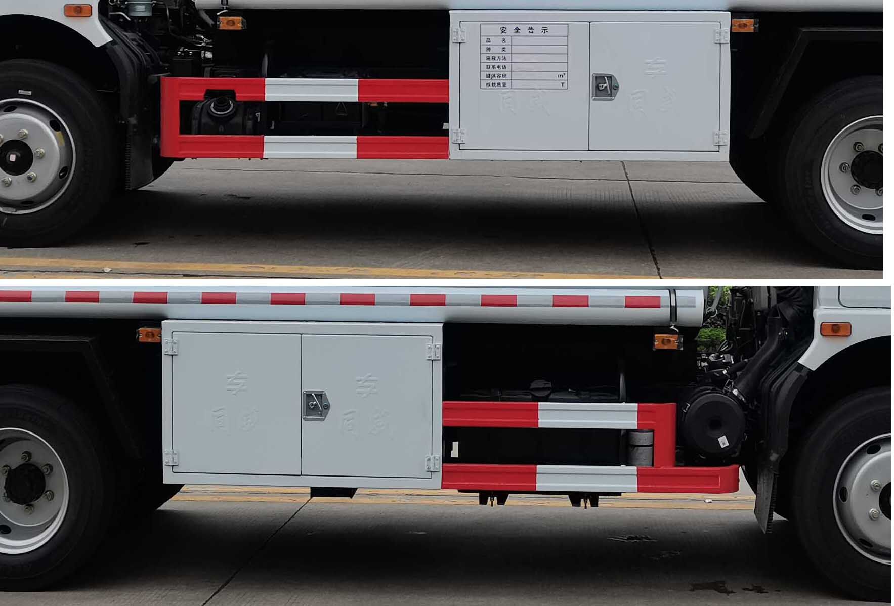 | 备注 | 1、该车运送危险货物车辆类型为:FL型;类项号:3。罐体有效容积:8.5立方米,罐体外形尺寸(长×长轴×短轴) (mm):4800×1850×1200,4800×1950×1350;2、侧/后防护材料为Q235,侧防护焊接,后防护螺栓连接,截面尺寸(mm):120×50,离地高450mm;加油机型号及生产企业:BL1111Z/珠海市贝林加油设备有限公司中山分公司,HS1812B/托肯恒山科技(广州)有限公司,SKES-1112/恒和嘉华科技有限公司(上海伯莱机械有限公司),SK20QF-111A,SK20QF-222A/郑州三金石油设备制造有限公司,CS20D1110F/正星科技有限公司,JSK-70B1121CZ,JSK-70B1121C,JSK45B1121C/稳恩佳力佳(北京)石油化工设备有限公司, ZH6444/佛山市众泽机电科技有限公司,FB80(EX)/永嘉县奥诚五金制品有限公司。3、选装导流罩.选装新结构导流罩.选装排半驾驶室.选装改侧窗的驾驶室.选装新前脸驾驶室.选装不同的侧门结构.选装新结构的保险杠。仅选用排气管前置,只装用子午线轮胎,前轮盘式制动器,安装限速装置最高车速80km/h,安装具有卫星定位功能的行驶记录仪,转向轮安装轮胎爆胎应急防护装置;ABS型号:ABS/ASR-24V-4S/4M,厂家:襄阳东风隆诚机械有限责任公司。该车型可选装ETC车载装置。 | ||