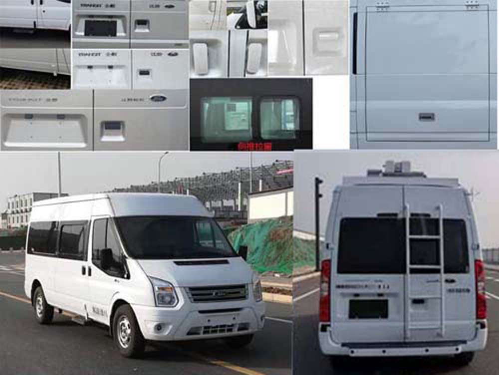 | 备注 | 1.该车加装工控机,UPS电源,电缆线盘,发电机,勘察箱,辅助上车装置,设备柜等检测设备专用装置,2随原车选装机械踏板或电动踏板,选装号牌板支架,尾部选装外部标识,选装侧推拉窗,选装车身同色后视镜,选装车身同色门把手及钥匙孔.3选装上掀门,上掀窗,选装不带设备平台,选装宣传扬声器,场地照明灯,选装升降照明灯,选装尾部爬梯.4,带OBD,5,选装不带设备平台高度为2360mm,选装升降照明灯高度为2730mm,选装高顶时高度为2890mm,整备质量为3340kg.6.ABS系统生产 厂家:博世汽车部件(苏州)有限公司,型号:6C11 2M110 A*或CC11 2C405 A*.7发动机型号:DURATORQ4D226H,发动机最大净功率101kw.8.该车型可选装ETC车载装置. | ||