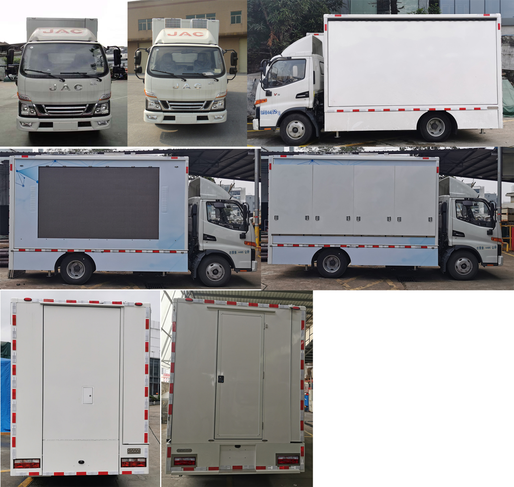 | 备注 | 1.车厢展台部分关闭时,顶部封闭.2.选装导流罩,车厢前部可选装无空调或双空调结构,车厢侧面可选装LED屏,音柱,无盖板结构,可选装不同后开门,后翻门或无后开门结构.3.随底盘选装前围面板,进气格栅,前组合灯具的驾驶室.4.侧防护和后防护均采用裙板结构,材料材质为Q235A,连接方式为焊接连接,后防护裙板离地高度460mm.5.ABS型号/厂家为VIE ABS-Ⅱ/浙江万安科技股份有限公司,选装ABS型号/厂家:CM4XL-4S/4M /广州瑞立科密汽车电子股份有限公司.6.H20-120E60、HFC4DB3-2E的最大净功率为87kW、90kw.7.该车专用装置为:液压动力单元集成系统,展示台,用于产品展示宣传。 | ||