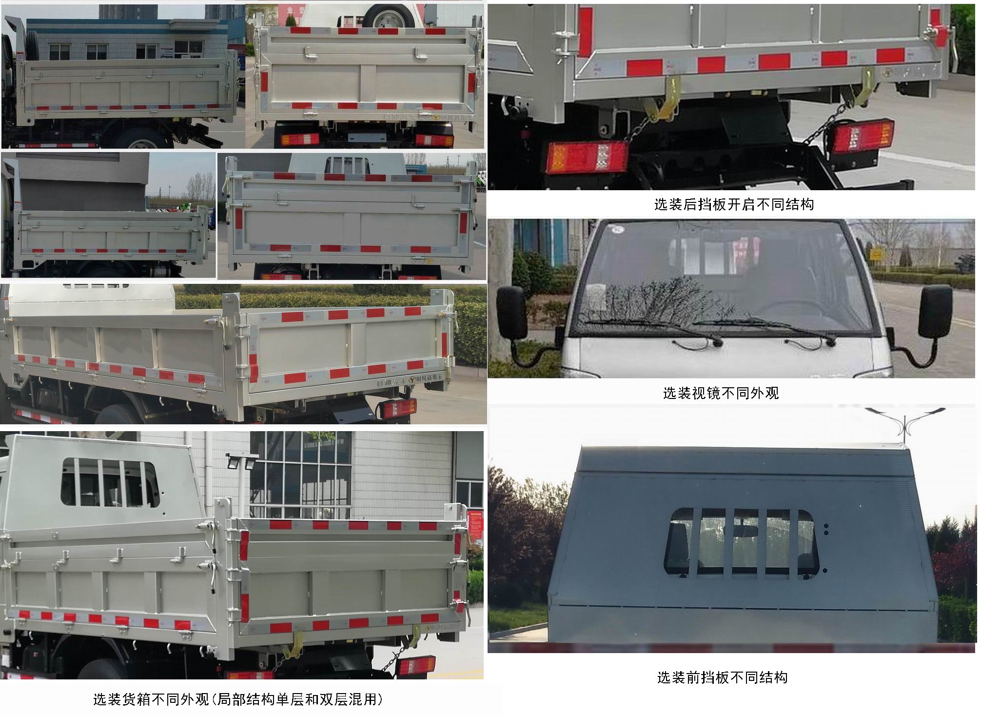 | 备注 | 后卸;防护装置材质为Q235,采用螺栓连接方式;后下部防护装置截面高×宽为130×30,离地高度为395mm;ABS系统型号/厂家: XN-3730601/济南鑫宁汽车配件有限公司,CM4XL-4S/4M/广州瑞立科密汽车电子股份有限公司,XH-KQ4S4M-E01/广州市西合汽车电子装备有限公司;选装货箱不同外观;选装后挡板不同开启方式;选装前挡板不同外观;选装前部灯具、中网和保险杠等;选装备胎不同安装位置;发动机CA4DB1-11E6对应的油耗值为11.7L/100km;发动机Q23-95E60对应的油耗值为11.1L/100km,货箱内部尺寸长3200、3050、2800和2600均可货箱内部尺寸高400、600、650和800,单位mm;选装不同货箱外观;选装不同外观视镜;选装环保盖、选装货箱不同外观;选装发动机催化器和尿素箱不同外观和位置;选装货箱不同外观;选装后开启结构 | ||