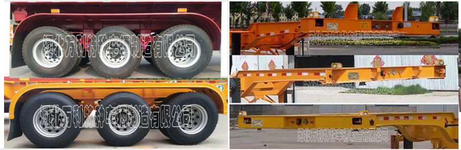 | 备注 | 该车为小鹅颈结构,可运输40英尺集装箱及非危险品罐箱;牵引销处的车架高度210mm,180mm,160mm,140mm,选装不带导向块时高度为1450mm,选装前部结构,选装轮胎护瓦样式,选装号牌板的结构,选装后部样式,选装尾部标志板的安装位置,选装后组合灯/雾灯为矩形结构。一、ABS:型号:QYABS;生产厂家:陕西和庆机电技术有限责任公司,ABS型号:CM2XL-4S/2M;生产企业:广州瑞立科密汽车电子股份有限公司。二,防护:侧防护材料采用Q345/后防护材料采用Q235,连接方式:侧下部防护装置用螺栓连接/后下部防护装置用焊接连接,后防离地高度为500mm,断面为160mm×55mm。车长/轴距/后悬/半挂车牵引销到车辆最前端的距离对应关系(mm):12500/7300+1310+1310/1680/900,12500/7300+1310+1310/1950/630. | ||
