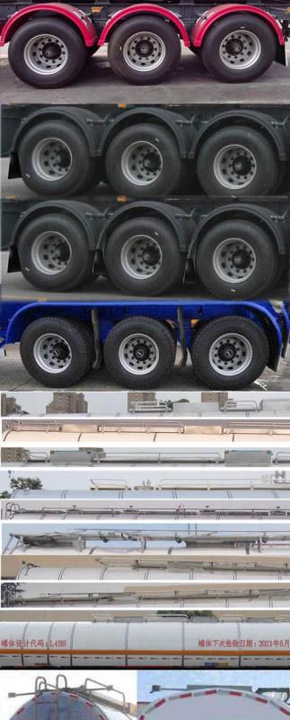| 备注 | 有效容积48立方米,罐体外形尺寸(mm):保温外罐长12200外径前φ2400/后φ2550,内罐长12000外径前φ2212/后φ2362.危险货物运输车辆的类型为:FL型,危险品类项号为:3.该车装空气悬架.选装挡泥板样式,顶部护栏及走道板样式,选装不同的外蒙板.选装前部带爬梯,选装后部爬梯位置及带阀门箱,选装后部不带爬梯,选装侧面尾部带铝合金阀门箱,选装侧面尾部不带或一侧带阀门箱.选装尾部标志板及牌照板位置.选装左侧防护带工具箱.ABS厂家/型号:威伯科(上海)管理有限公司/4005000880;广州瑞立科密汽车电子股份有限公司/CM2XL-4S/2K(4S/2M);浙江万安科技股份有限公司/VIE-TABSⅡ;广州市西合汽车电子装备有限公司/XH-GQ4S2M-E01.EBS厂家,型号:克诺尔商用车系统企业管理(上海)有限公司,K11061XVXX或瀚德汽车产品(苏州)有限公司,4S2M或威伯科(上海)管理有限公司, 4801020640或浙江万安科技股份有限公司,VIE TEBS-I.侧防护材料为铝合金,螺栓连接,后防护材料为铝合金,选装Q235,螺栓连接,后防护断面尺寸80×150mm,离地高495mm.采用适用于牵引危险品运输半挂车的牵引车.整车长/轴距/半挂车牵引销到车辆最前端距离/后悬(mm):12650/6800+1310+1310/1700/1530,12750/6600+1310+1310/1700/1830. | ||