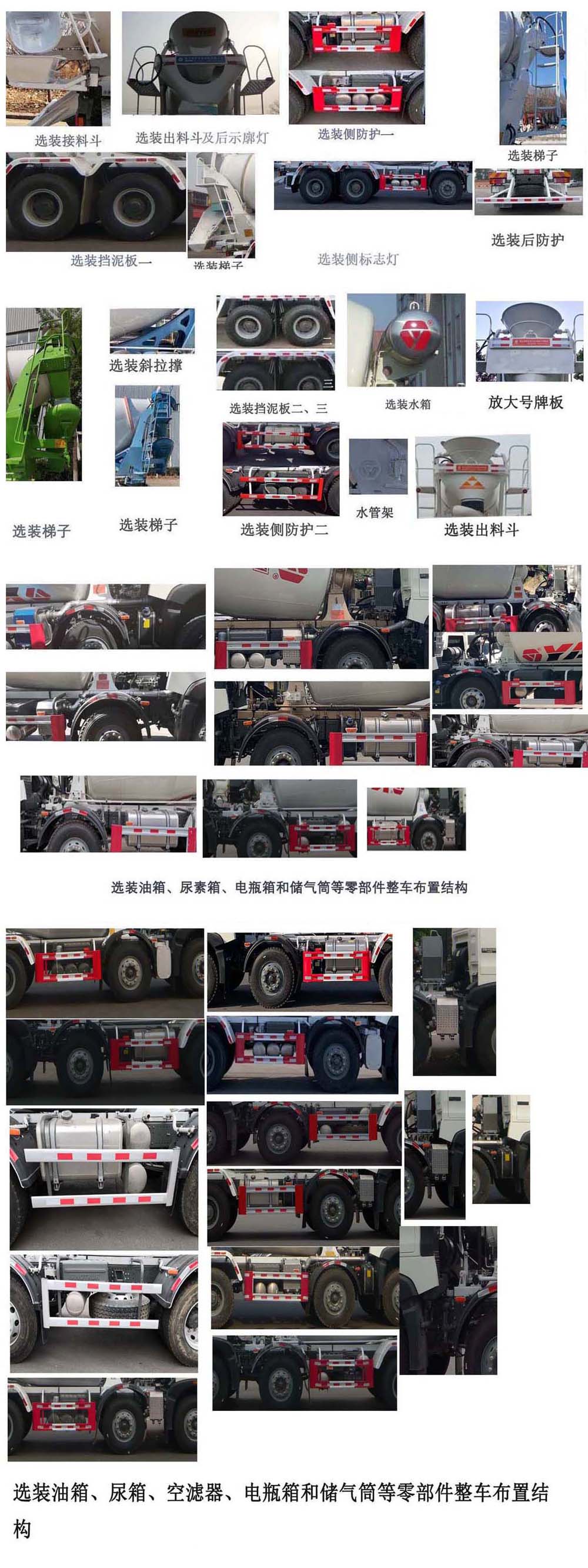 | 备注 | 搅动容量7.73立方米.罐体总长6050mm,最大直径2290mm.罐体安装角度13.5°.侧后防护材质:Q235.侧防护和选装侧防护支撑座与副车架焊接,侧防护与支撑座螺栓连接,后防护与车架螺栓联接,后防护断面尺寸: 120mm×80mm,后防护离地高度:460mm.安装具有卫星定位功能的行驶记录仪.ABS系统型号为4460046300,生产企业为威伯科汽车控制系统(中国)有限公司.发动机MC07.31-50和发动机MC07.34-50及发动机MC07.35-50油耗值37.2L/100km,发动机WP8.340E51油耗值37.3L/100km,发动机MC09.40-50和MC09.38-50及MC09.36-50和MC09.34-50油耗值37.3L/100km,发动机MC07H.29-50和MC07H.32-50和MC07H.35-50油耗值37.4L/100km.发动机MC11.44-50和MC11.40-50油耗值37.4L/100km,发动机WP10H400E50油耗值37.4L/100km,发动机WPWP9H350E50油耗值37.3L/100km,发动机WP8.320E51A油耗值37.3L/100km.随底盘选装驾驶室,选装后风窗,选装遮阳罩,选装保险杠等,随底盘选装油箱、尿素箱、空滤器、电瓶箱和储气筒等零部件整车布置结构.仅选用底盘轴距(mm)1800+3050+1350;仅选用钢板弹簧.选装挡泥板、接料斗、出料斗、侧防护、后防护、选装梯子、选装后示廓灯和侧标志灯、斜拉撑、水管架、水箱、放大号牌板等 | ||