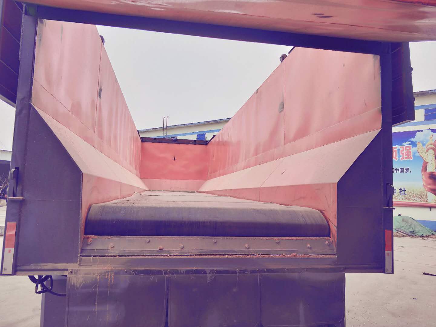 | 备注 | 该产品不能举升自卸,无自卸举升装置,该车用于散装粮食运输,顶部为硬质顶盖,顶部可开启.后部不可整体开启;卸货方式为皮带式传送,箱体部分选装竖瓦楞,横瓦楞,方管平板,具体为液压马达减速机前后平移,实现清理粮食.车厢底部中间为橡胶传送带结构,车辆的ABS厂家/型号:广州瑞立科密汽车电子股份有限公司/CM2XL-4S/2M;侧,后下部防护装置材料Q235B,连接方式均为焊接,后防护装置截面为180x80mm,离地高度为500mm | ||