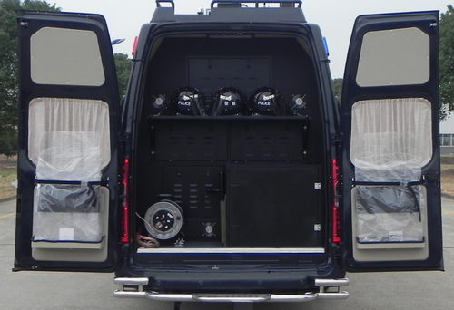 | 备注 | 随底盘选装前大灯、前格栅、后尾灯、号牌板支架、车身同色后视镜、车身同色门把手及钥匙孔,随底盘选装中顶,中顶VIN前八位为(LJXBMDJD)。车顶可单独或部分选装前额凸台、设备平台、空调、换气扇、监控摄像头、云台摄像机及升降照明灯,车身一侧或两侧选装盲窗、遮阳蓬、显示屏,选装尾门爬梯、桅杆。不装车顶设备或选装前额位置凸台时车高:2590(高顶),2360(中顶),选装车顶空调车高:2950(高顶),2720(中顶),选装车顶升降照明灯车高:3110(高顶),2880(中顶),选装车顶无线电天线车高2850(高顶),选装车顶前额位置气象站设备车高3040(高顶),选装车顶干扰天线设备车高3400mm,选装车顶云台摄像机高3250mm。选装新款前格栅车身5820mm,对应前悬/后悬为973/1097mm.选装前后防撞架车长5995mm,对应前后悬为1080/1165mm。配备设备柜、绕线盘、指挥调度设备等专用装置。ABS系统控制器型号: 6C11 2M110 A*或CC11 2C405 A*或EV7021,生产厂家:博世汽车部件(苏州)有限公司。发动机最大净功率为101kw。 | ||