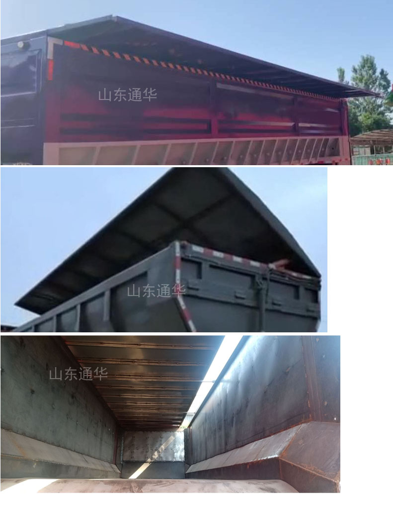 | 备注 | 该产品不能举升自卸,无自卸举升装置;该车顶部为硬质顶盖,顶部可开启,选装硬质环保盖结构,后门不可整体开启,用于散装粮食运输,卸货方式为链索刮板和传送带式,具体为后部液压马达驱动减速机滚筒,滚筒带动传送带向后平移,实现粮食的卸料,选装外观结构,选装前部样式,选装侧面样式.车长/牵引销至车辆最前端的距离/轴距/后悬尺寸关系一一对应.一,ABS系统控制型号:HNABS-4S/2M,生产厂家:山东海纳汽车科技有限公司.二,防护:防护材料均采用Q235B,与车辆连接方式为焊接. 后防护截面尺寸(mm):140X60离地高度为430mm. | ||