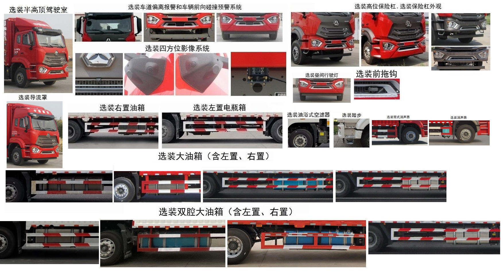 | 备注 | 该车选装半高顶驶室。该车可不选装导流罩。选装高位保险杠。选装保险杠外观。选装踏步。选装昼间行驶灯。该车可选装油浴式空滤器。选装右置油箱。选装大油箱。选装双腔油箱。选装左置电瓶箱。选装消声器。选装四方位影像系统。选装车道偏离报警和车辆前向碰撞预警系统。选装前拖钩。该车仅选装二类底盘的5100mm轴距。整备质量7880kg,对应额定载质量为9990kg(驾驶室准乘2人)或9925kg(驾驶室准乘3人),载质量利用系数为1.28;整备质量8200kg,对应额定载质量为9670kg(驾驶室准乘2人)或9605kg(驾驶室准乘3人),载质量利用系数为1.19。可选装货箱外观结构。货箱底板到栅栏顶部高度为2500mm或2550mm或2600mm。所装MC05.21-50、MC07.24-50、WP4.6NQ220E50、MC05H.20-50、MC05H.23-50、MC05H.25-50、MC07H.29-50、WP7.270E51、WP7.300E51发动机对应的油耗申报值均为26.5L/100km。可选装货箱外观结构。选装工具箱。侧面防护装置所用材料材质为Q235A,连接方式为螺栓连接;后部防护装置所用材料材质为Q235A,连接方式为螺栓连接+焊接,断面尺寸为120mm×120mm,离地高度为480mm。ABS系统型号为446 004 6300,生产企业为威伯科汽车控制系统(中国)有限公司。安装具有卫星定位功能的行驶记录仪。该车可选装油浴式空滤器。该车可选装限速装置,限速79km/h或89km/h。选装ETC车载装置。选装新款面罩。 | ||