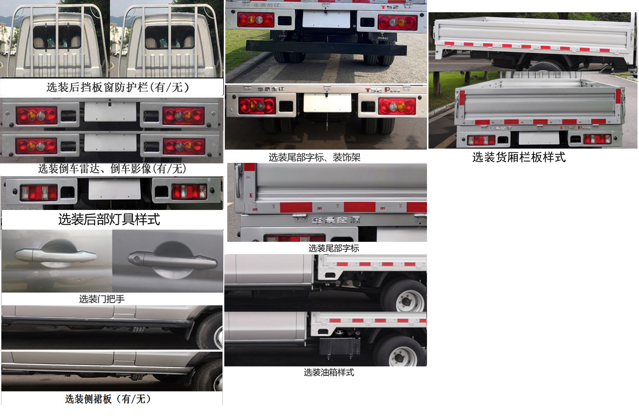 | 备注 | 1.选装(MP5,后挡板窗防护栏,倒车雷达,倒车影像,侧裙板,后部灯具样式,装饰架,尾部字标,门把手样式,油箱样式,货厢栏板样式);2.发动机型号SWE20M,最大净功率93kW,油耗申报值7.9L/100km ;3.ABS型号/生产企业:YF8/武汉元丰汽车电控系统有限公司;4.该车型符合国六标准b限值要求. | ||