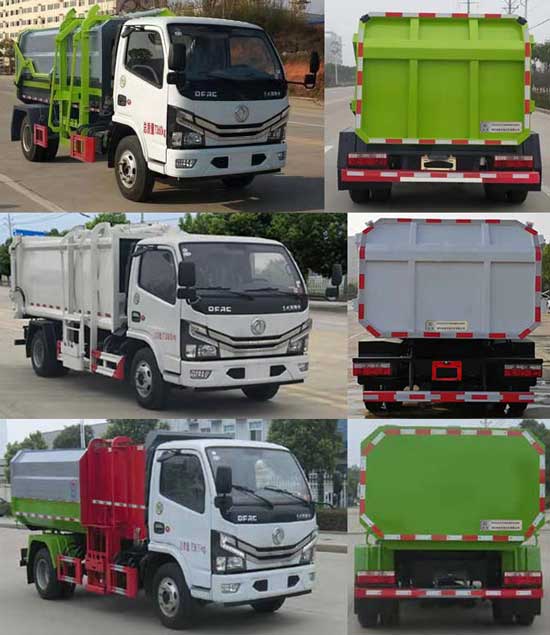 | 备注 | 1.随底盘选装驾驶室,选装箱体外观,2.整车长度/轴距/后悬对应关系为(mm) :5995/3308/1632,5700/2950/1695,5500/2700/1745.3.防护材料:Q235碳钢,连接方式:左右侧面防护与副梁均采用螺栓连接,后下部防护与车架采用焊接连接,后部防护断面尺寸(mm):100×50,后部防护离地高度(mm):420.4.ABS型号/厂家:ABS/ASR-12V-4S/4M/襄阳东风隆诚机械有限责任公司;5.发动机与油耗值(L/100km)的对应关系为:Q28-130E60/11.3,CA4DB1-13E6/11.3,H20-120E60/11.4,Q23-115E60/11.2,CA4DB1-11E6/11.4,CY4BK161/11.3,CY4BK461/11.4,D20TCIF1/11.3,YCY24140-60/11.3,ZD30D16-6N/11.3;6.该车主要用于垃圾收集转运,专用装置为垃圾箱及提升机装置. | ||