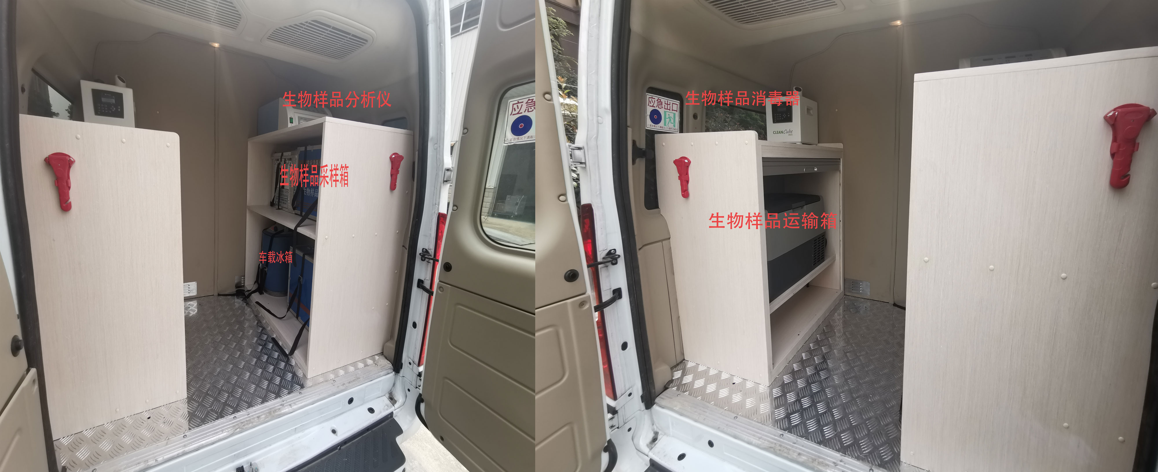 | 备注 | 在车厢内后部装备有生物样品分析仪、生物样品采样箱、生物样本运输箱、生物样品消毒器、车载冰箱,用于生物样品采样检测的专用作业车。ABS型号:6C11 2M110 A*,生产企业:博世汽车部件(苏州)有限公司。发动机最大净功率:101kW。该车装备ETC车载装置。 | ||