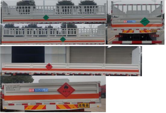 | 备注 | ABS型号:3631010-C2000;ABS生产企业:东科克诺尔商用车制动系统(十堰)有限公司;安装有限速装置;限速装置限速(km/h):80;安装有具有卫星定位功能的行驶记录仪;选装部件名称及其相关描述:随底盘选装驾驶室,选装驾驶室前面罩,选装侧窗玻璃;驾驶室顶部中间三个装饰灯为选装件;前雾灯为选装件;驾驶室前脸扰流罩为选装件;选装货厢厢板结构,后门结构;发动机/油耗值(L/100km)对应关系为:B6.2NS6B230/36.1;B6.2NS6B245/36.1;所用材料材质、连接方式以及后部防护装置的主要尺寸参数(断面尺寸和离地高度):侧/后防护装置:材料Q235,连接方式均为焊接;后下部防护装置:断面尺寸120×60mm,离地高度485mm;运输独立容器(瓶)包装的货物;AT型车辆;危险货物类项号:2.1,2.2;特性描述:该车型后轴采用空气悬架,排气管前置,前轴装备盘式制动器.该车转向轮装备轮胎爆胎应急防护装置.安装子午线轮胎.可选装ETC车载装置;其他说明:该车运输的气瓶盛装介质2.1项易燃气体时,车辆左,右侧及后部粘贴"易燃气体"标示牌,该车运输的气瓶中盛装介质2.2项非易燃无毒气体时,车辆左,右侧及后部粘贴"不燃气体"标示牌.整车外形长/前悬/轴距/后悬的对应关系为(mm) :10100/1430/1995+4200/2475,11000/1430/1995+5000/2575; | ||